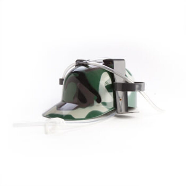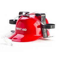 Fun and eye-catching as well practical, the Drinking Hat is available in the following designs: Australian Flag, Miner's hat (with battery powered light for drinking in the dark), camouflage, "Thirst Aid", "Wasted", "Prescription Party Time" and plain purple. Each one holds two standard drinks cans and the straws lead from the cans straight into your mouth for an efficient and spill proof drinking experience.