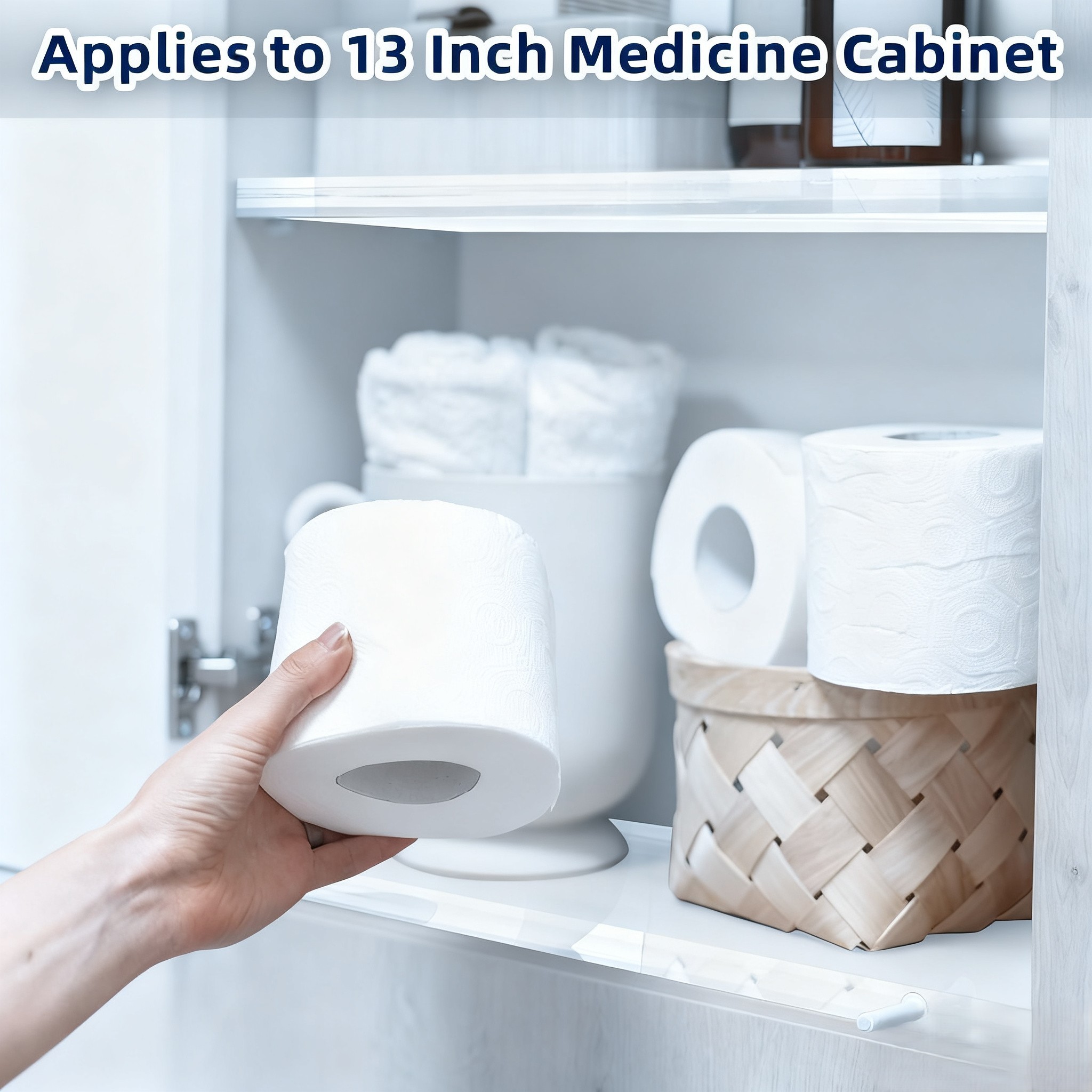 *Optimized Dimensions: Measuring 13 inches by 3 inches, each shelf provides a tailored fit for your cabinet. Their slim design maximizes storage efficiency, accommodating various items like medicines and toiletries while keeping your space organized.