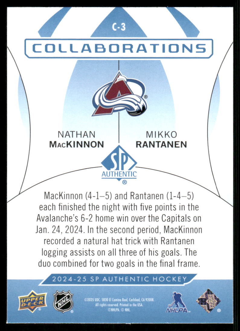 2024-25 SP Authentic Collaborations Blue #C3 Nathan MacKinnon Mikko Rantanen HKY
