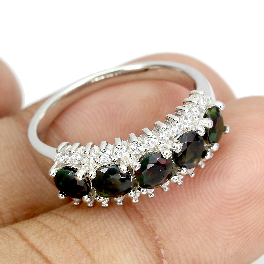 Clarity Enhanced Round Black Opal 4mm Simulated Cz 925 Sterling Silver Ring 8