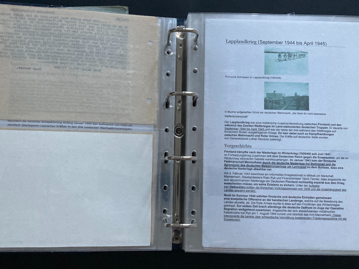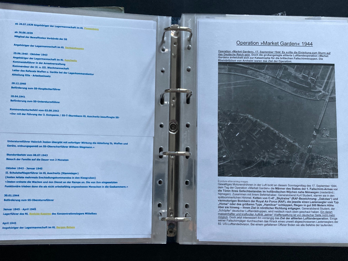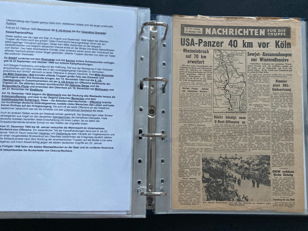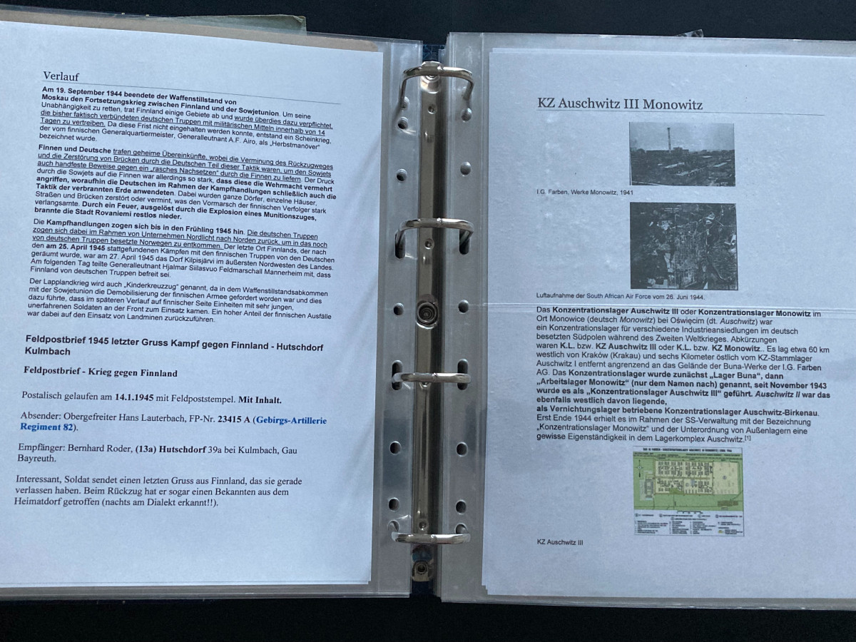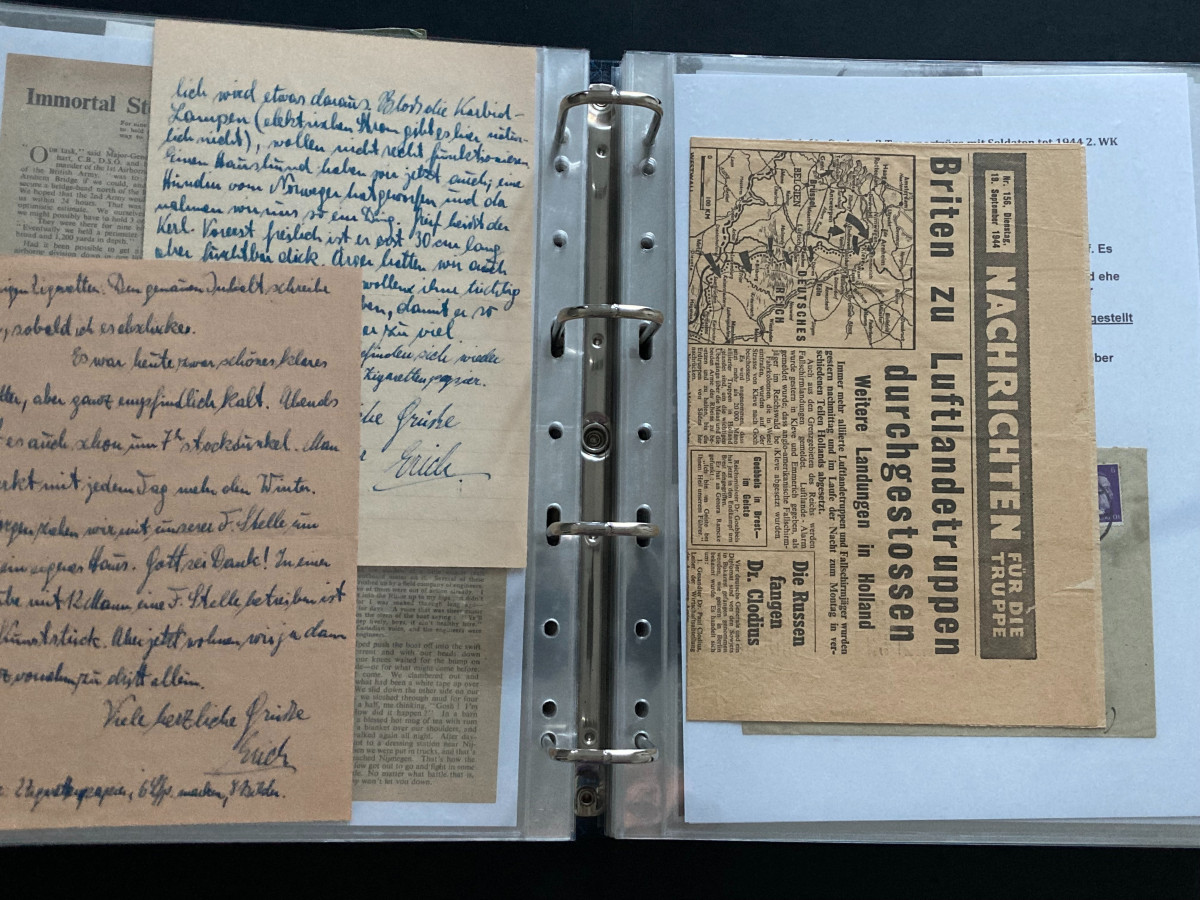 Des Weiteren finden sich darin Flugblätter, einzelne Briefinhalte oder Berichte (teilweise als Fotokopien) aus den Bereichen SS, Waffen-SS, Marine, Luftwaffe und Heer.