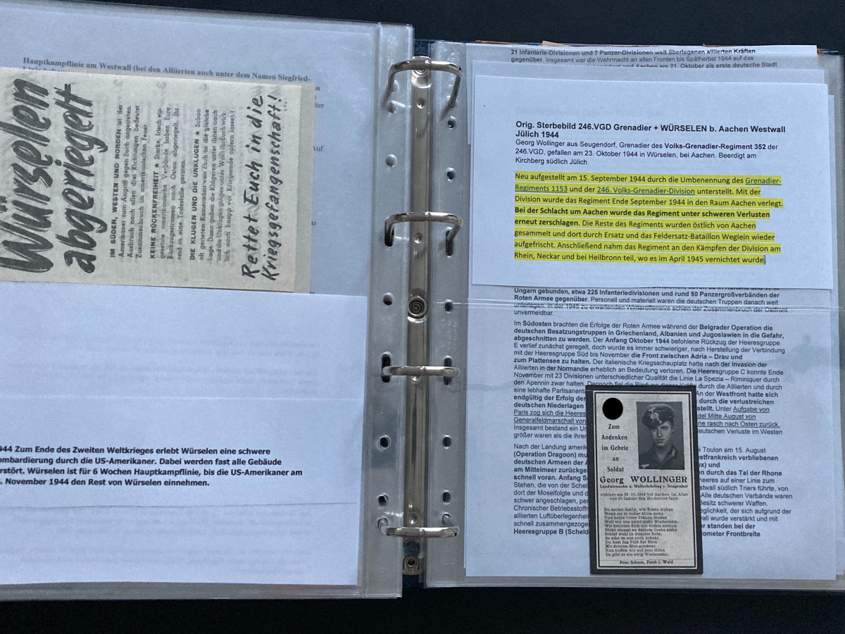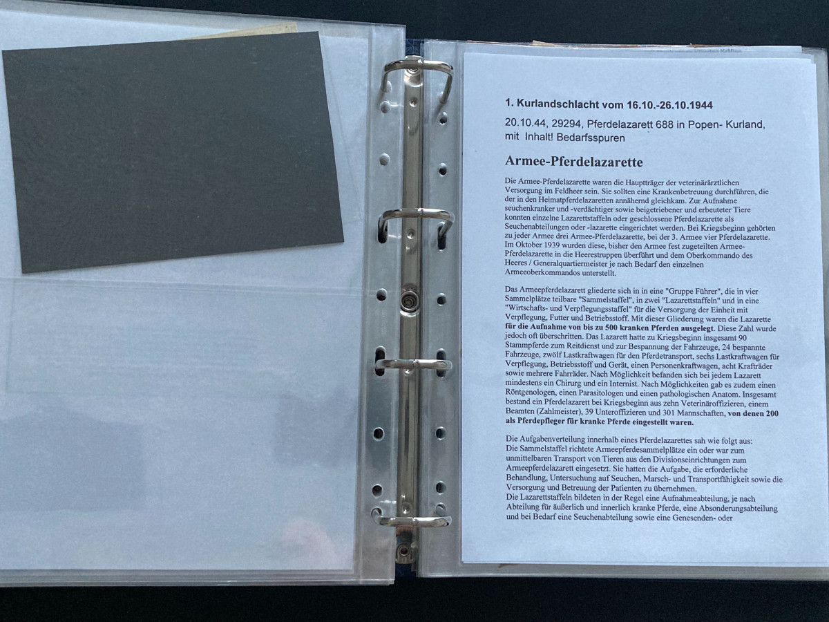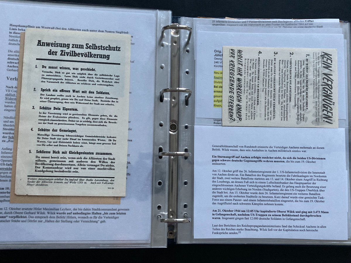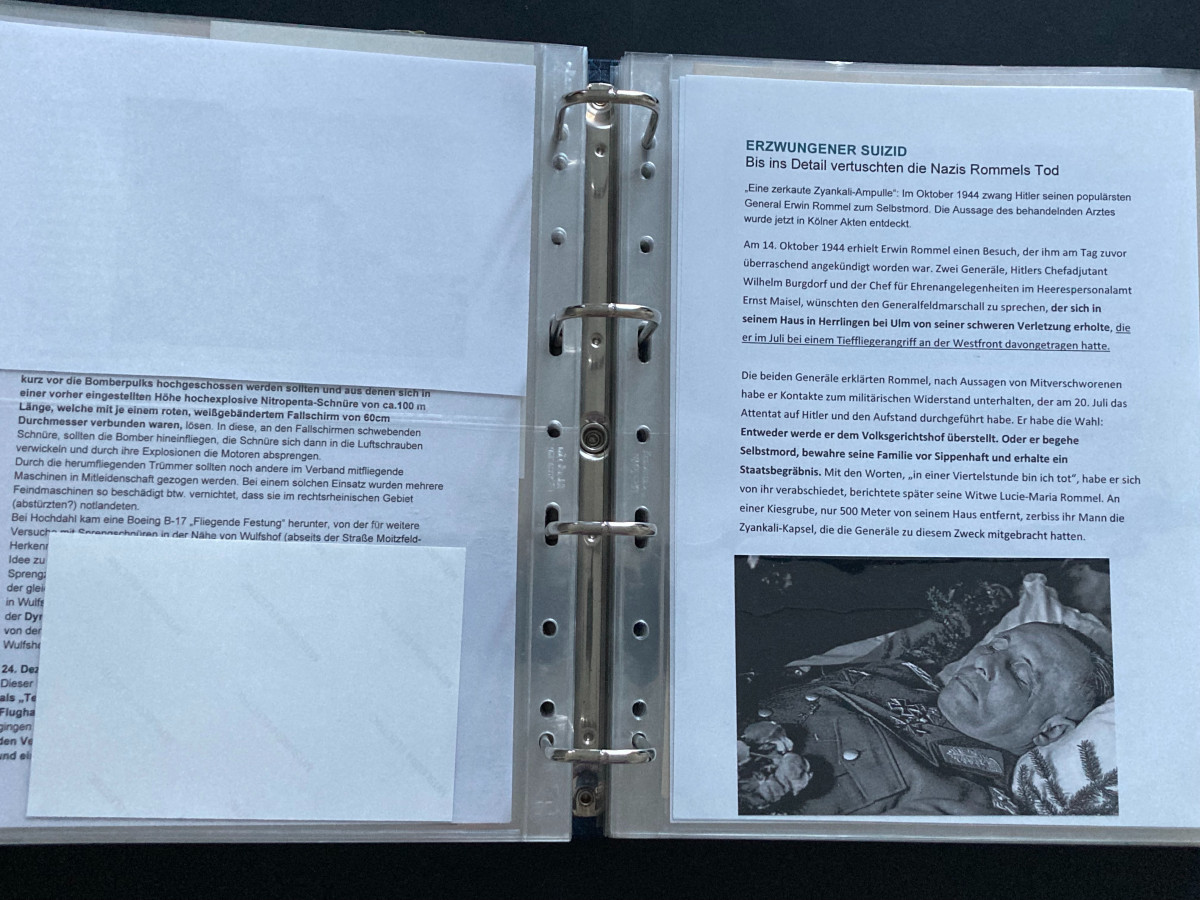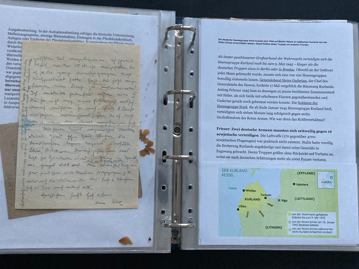 Des Weiteren finden sich darin Flugblätter, einzelne Briefinhalte oder Berichte (teilweise als Fotokopien) aus den Bereichen SS, Waffen-SS, Marine, Luftwaffe und Heer.