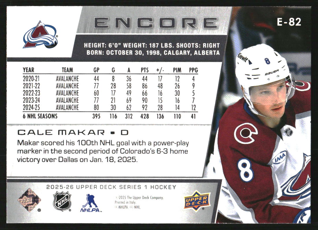 2025-26 Upper Deck Encore #E82 Cale Makar - HKY