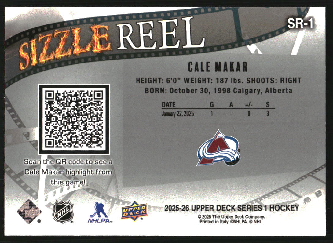 2025-26 Upper Deck Sizzle Reel #SR1 Cale Makar - HKY