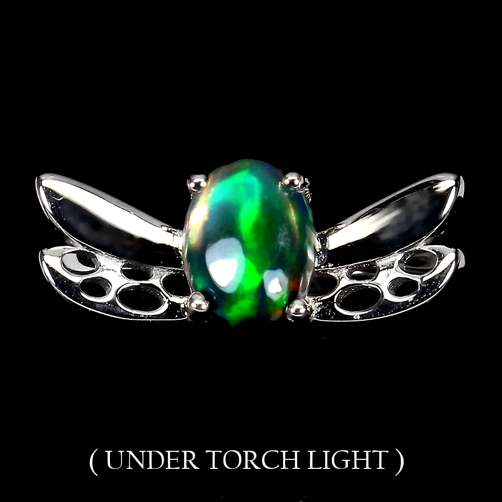 Clarity Enhanced Oval Black Opal 8x6mm Rhodolite 925 Sterling Silver Ring Size 7