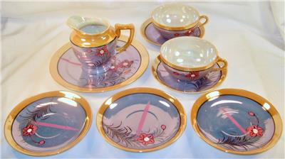 - TK189 Pink Flowers On Blue Luster 9 Piece Takito Japan Incomplete Tea Set