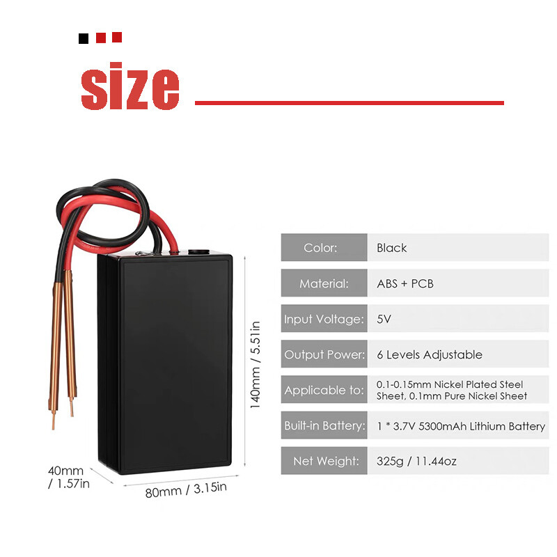 Comes with high rate lithium battery, and it can continuously welding thousands of points on 0.1-0.15mm nickle sheet after being fully charged.