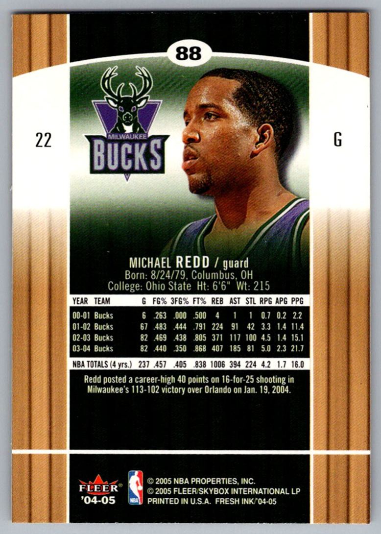 2004-05 Fleer Authentix Michael Redd Milwaukee Bucks #22