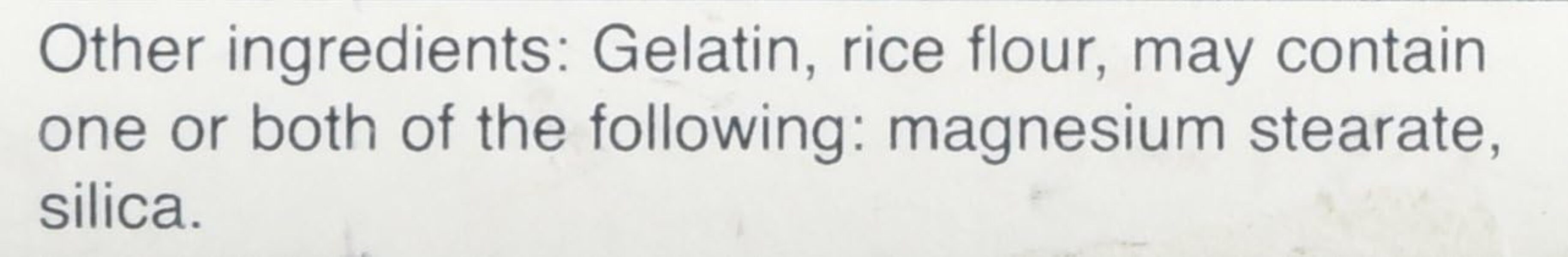 Other Ingredients: Gelatin, Rice Flour, Magnesium Stearate