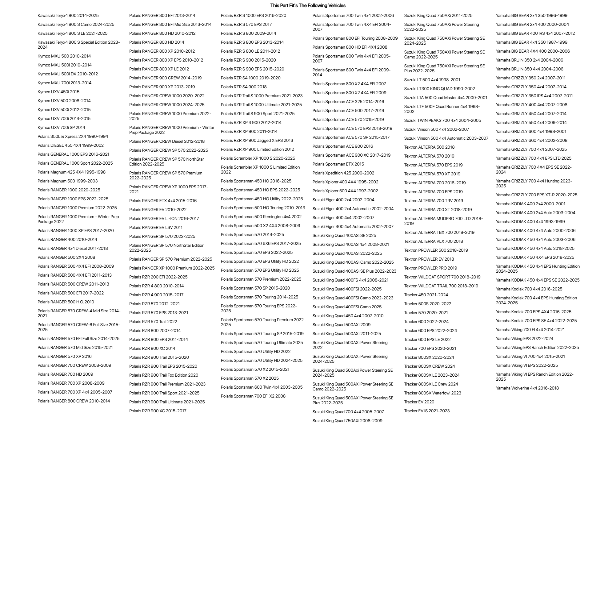 Special Notes:Please note: Tire sizes vary by machine please check your current tire and wheel size before ordering. Size 26x9-12 Tire Construction Bias Max Seating PSI 32 Max Operating PSI 7 Position Front Sidewall Blackwall Weight 24.14 lbs. Rim Size 12 Directional No Tread Depth 26/32 Ply Rating 6 SAFETY Refer to your machine’s documentation for proper maintenance. Always give tires a gentle “run-in” period of 100 miles to get the feel of new tires. Always match the front and rear tires for optimal handling, safety and performance. Mixing radials with bias may adversely affect handling and stability. Worn/unworn tire combinations and worn tires used in wet conditions can result in deteriorated handling. WARNING The charts and info on this page do not imply interchangeability. Consult your machine’s manual to determine correct replacements, clearances, compatibility and stability, load-bearing capacity, speed rating, radial vs. non-radial, pattern and tread compound requirements, inflation recommendations and front-to-rear tire matching. Wrong selection can result in tire failure or loss of control with serious injury or death.