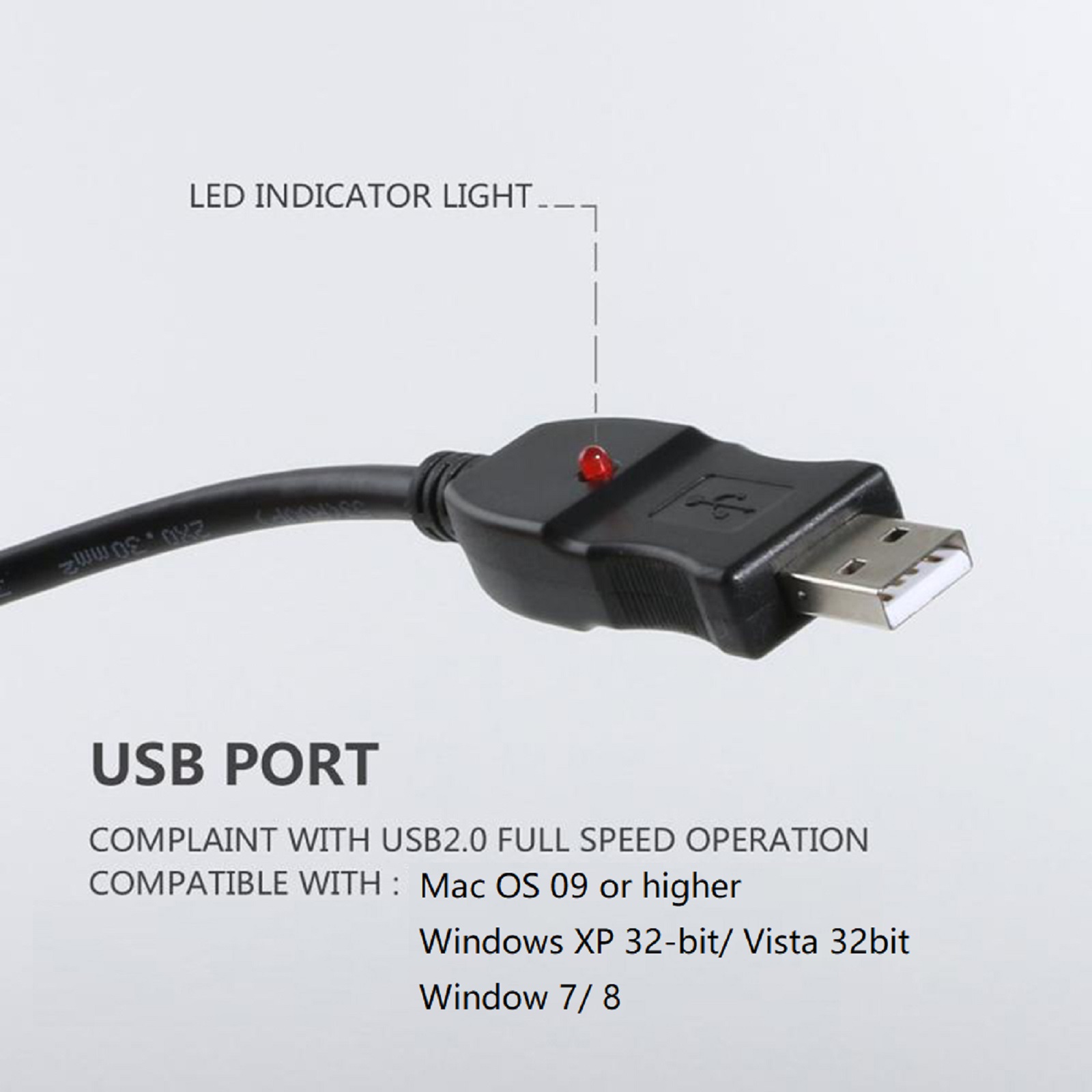 Feature: 1. USB interface plug and play, suitable for any computer model 2. Compatible with game devices PS2/PS3/WII/XBOX hosts 3. Built in 16 bit 48/44.1KHz digital to analog conversion chip 4. Strong directionality, anti noise, high standard capacitance microphone core 5. Clear sound quality, suitable for computer recording and karaoke equipment use 6. USB products may experience sound delay due to different computer configurations in design 7. Embedded A/D convert with audio signal boost Red indicator light when signal is being transmitted 8. Simple plug and play connection without additional driver