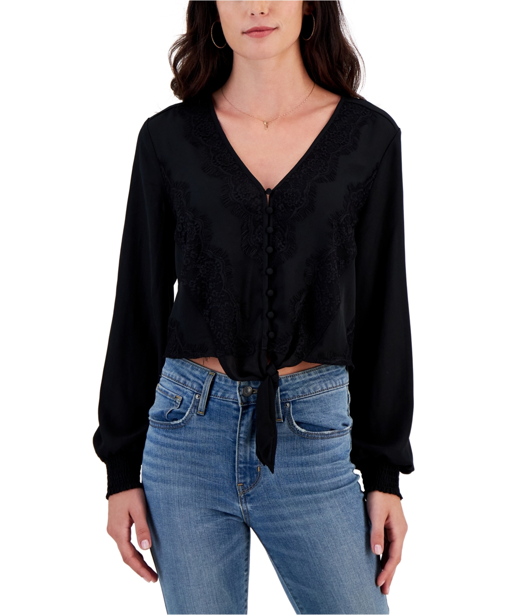 Self E Womens Lace Trimmed V Neck Peasant Blouse