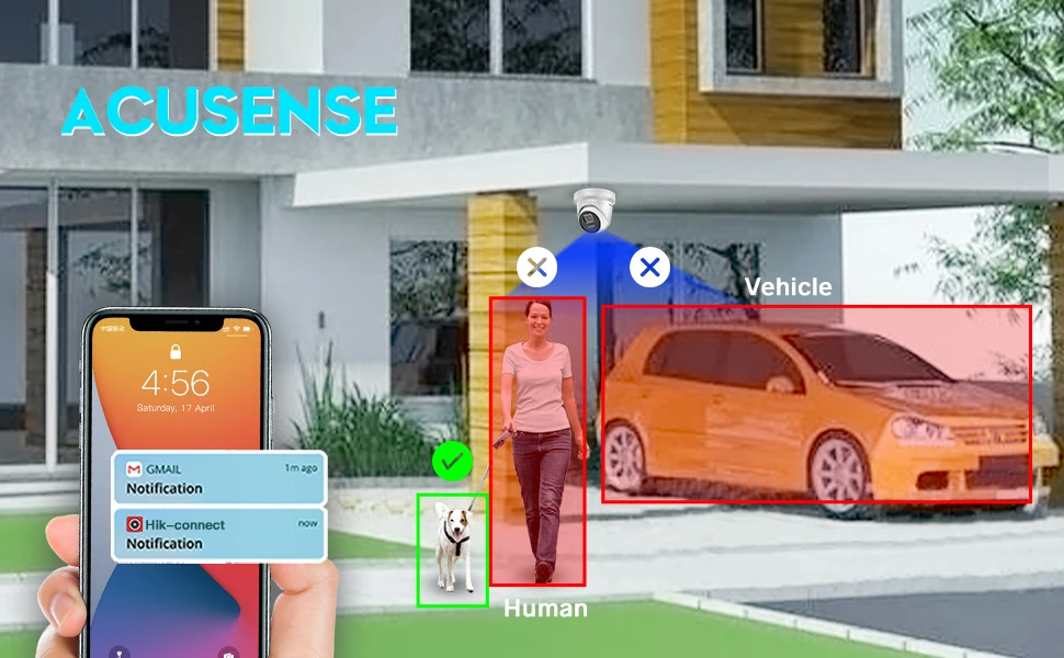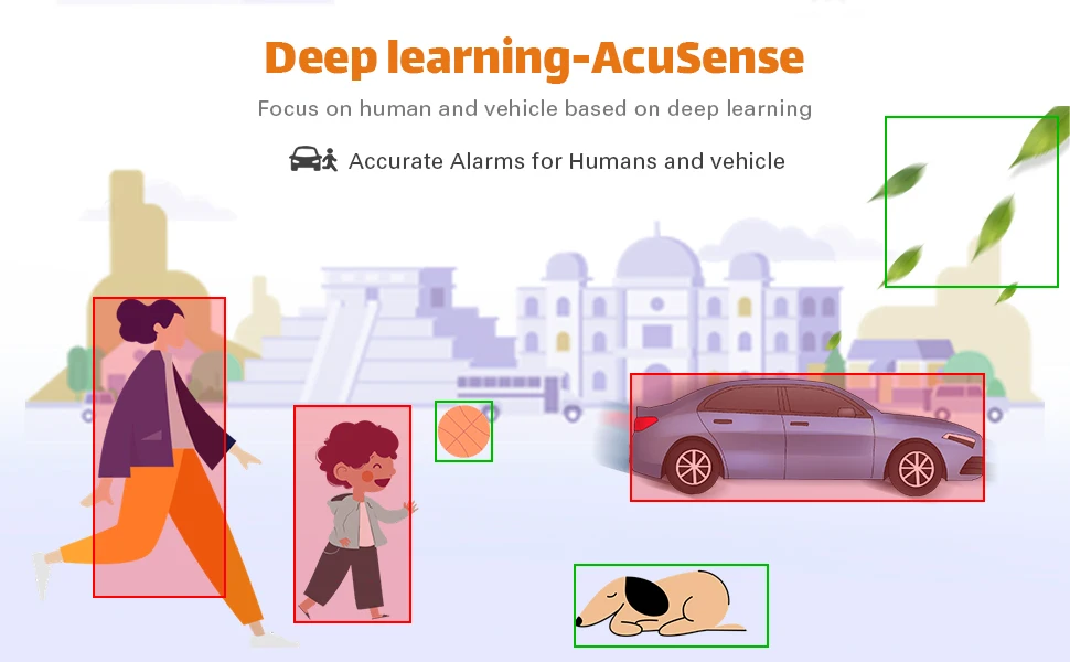 (Empowered by deep learning algorithms, Hikvision AcuSense technology brings human or vehicle target classification alarms to front- and back-end devices. The system can greatly reduce false alarms generated by targets other than humans or vehicles, vastly improving alarm efficiency and effectiveness)