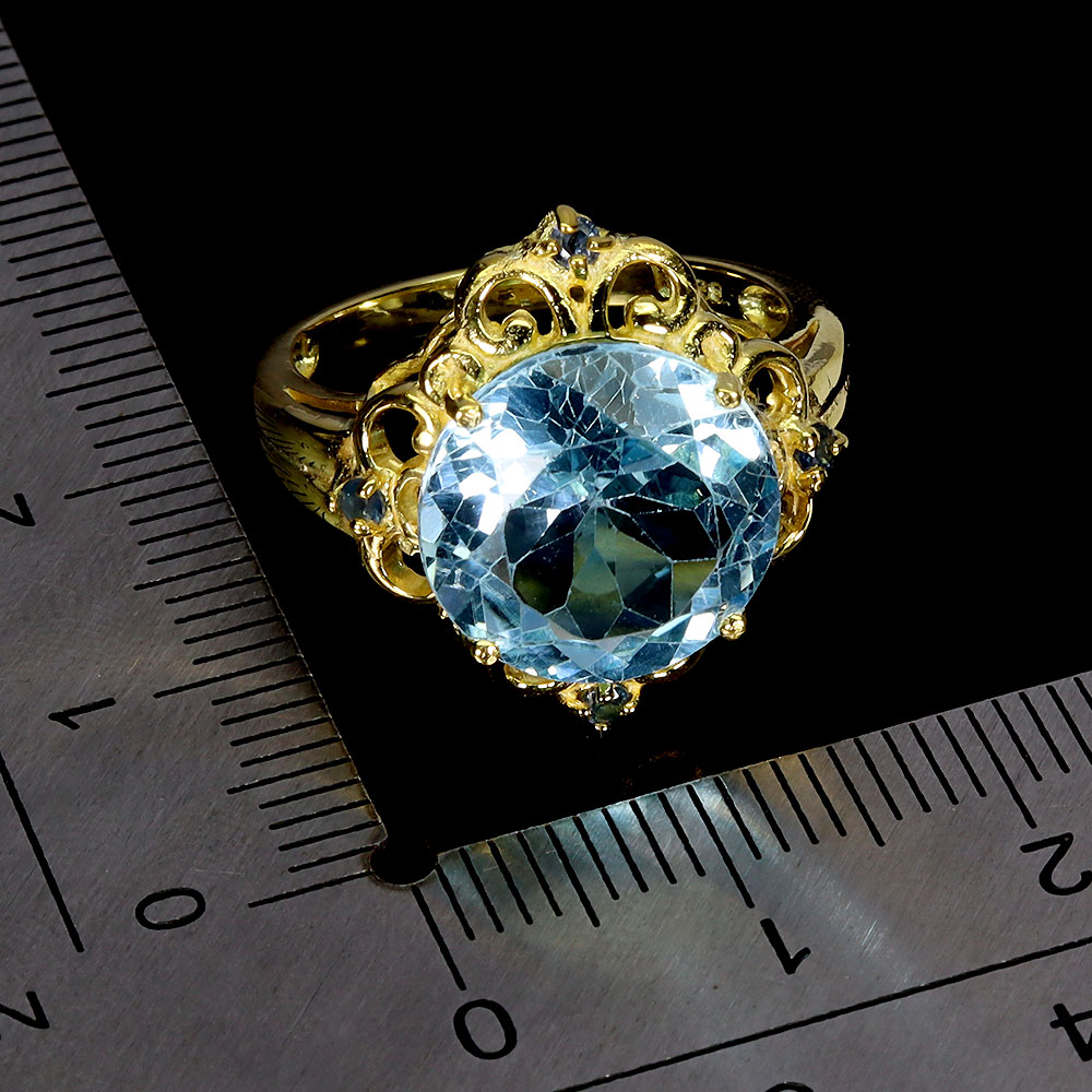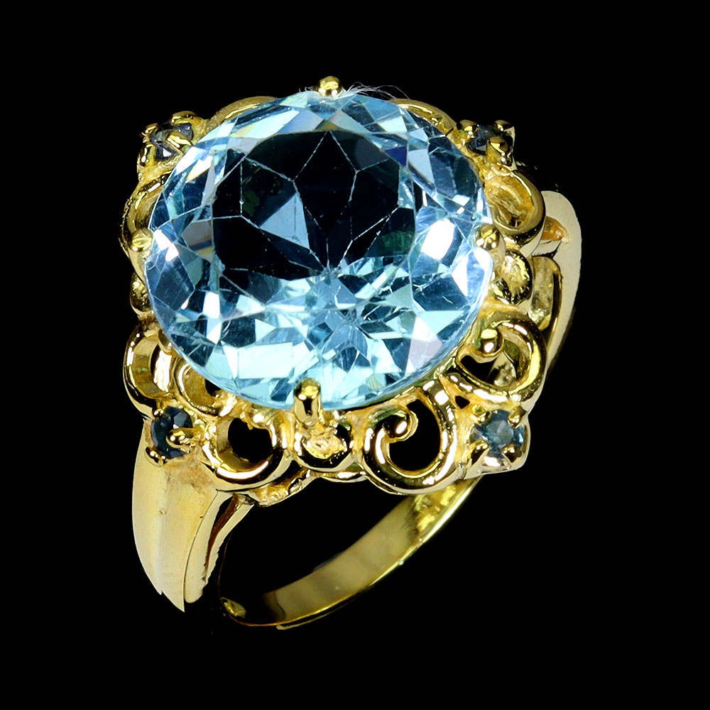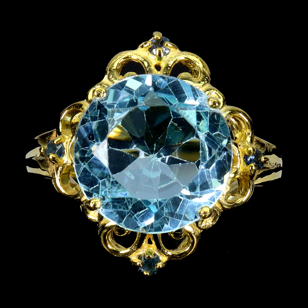 925 Sterling Silver Ring Round Sky Blue Topaz 12mm Sapphire Gemstone Jewelry 6.5