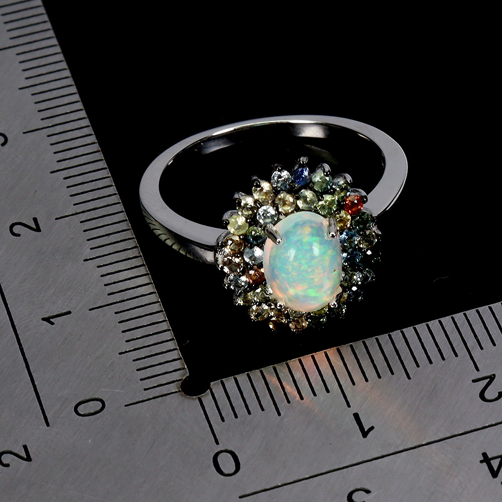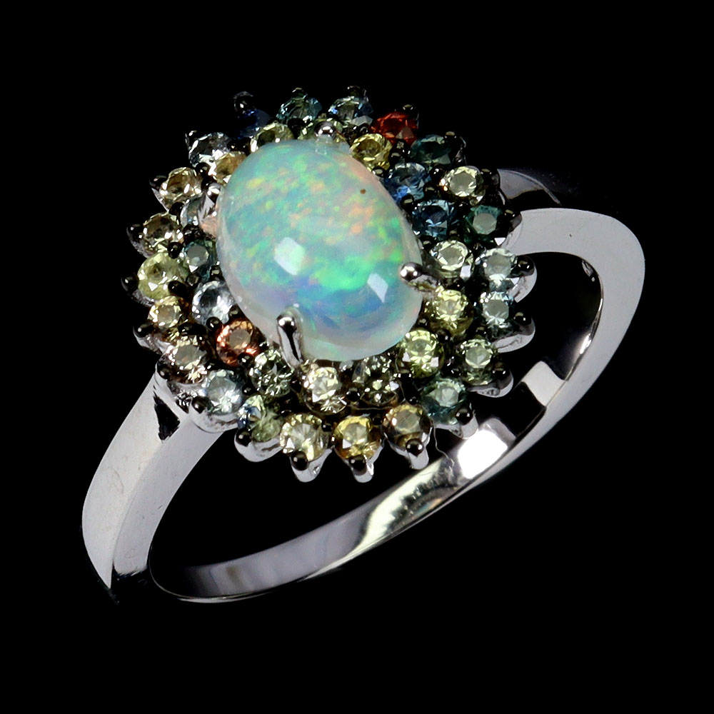925 Sterling Silver Ring Oval Fire Opal 8x6mm Sapphire Gemstone Jewelry Size 7
