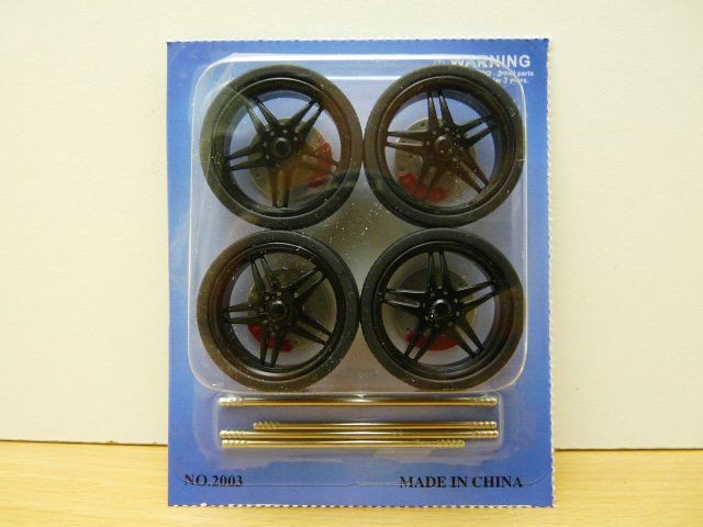 Ici en couleur noire, ces 4 jantes s'adaptent sur vos miniatures à l'échelle 1/18 ou 1/24, les axes métalliques de fixation et les disques de frein sont fournis avec et vous permettront de réaliser des modèles uniques