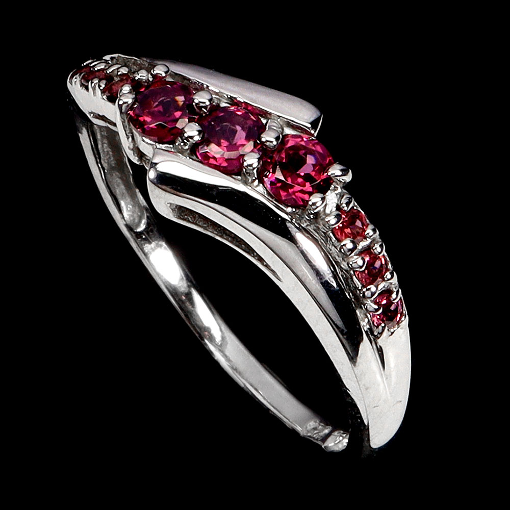 925 Sterling Silver Ring Round Rhodolite Garnet 3mm Gemstone Jewelry Size 8