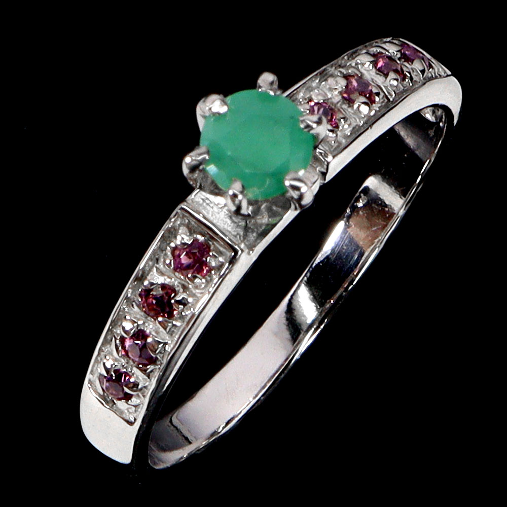 925 Sterling Silver Ring Round Emerald 4mm Rhodolite Garnet Gemstone Jewelry 8