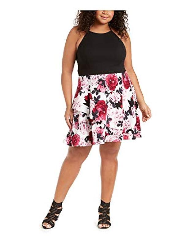 Speechless Womens Plus Floral Fit & Flare Halter Dress Black 22