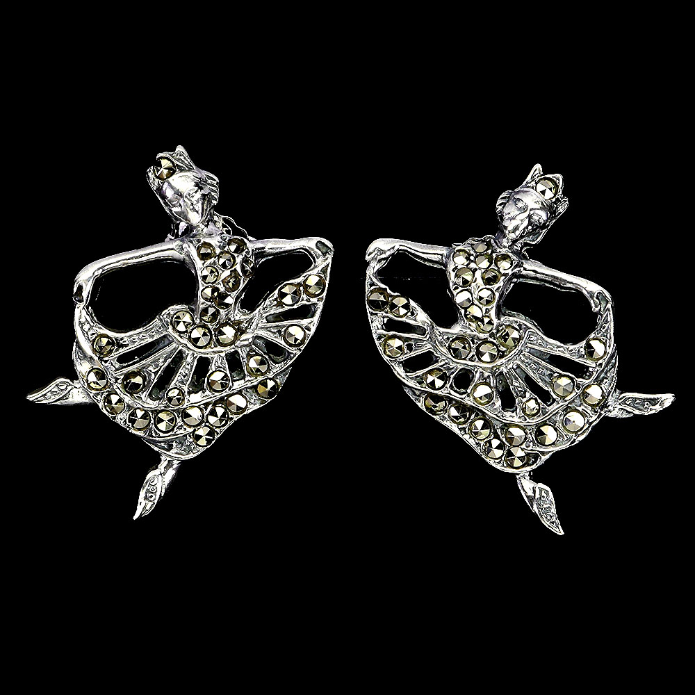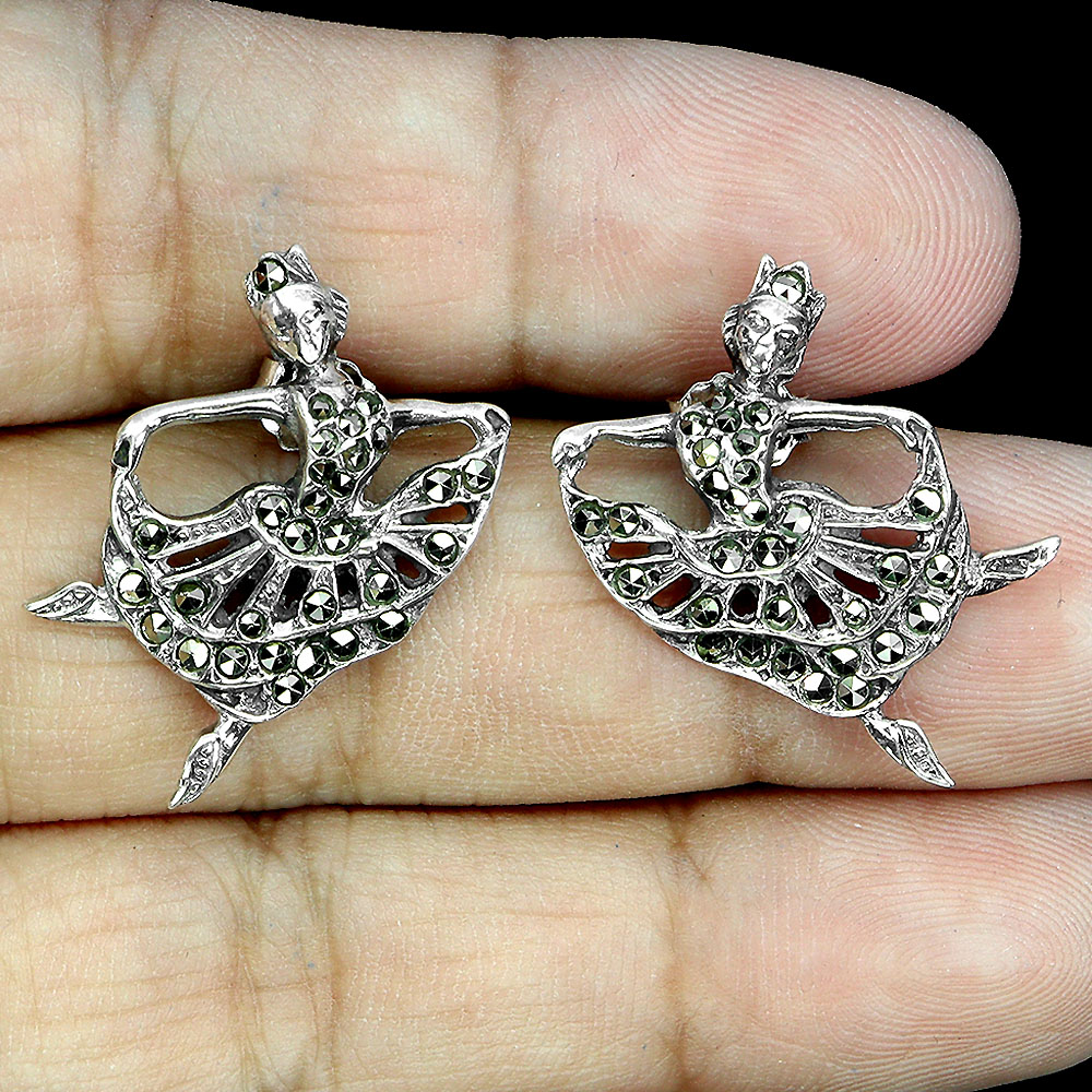 925 Sterling Silver Earrings Round Marcasite Lady Natural Gemstone Jewelry