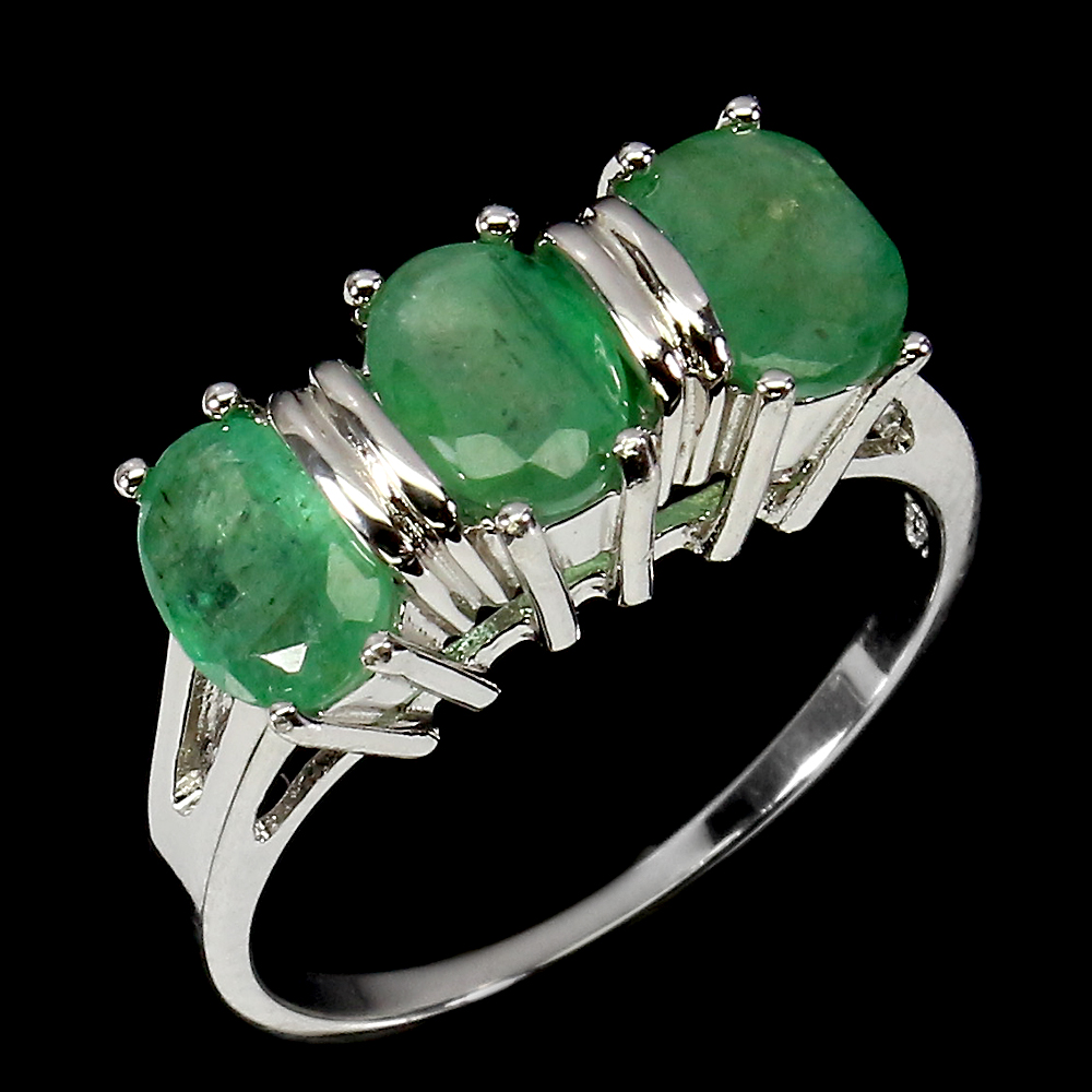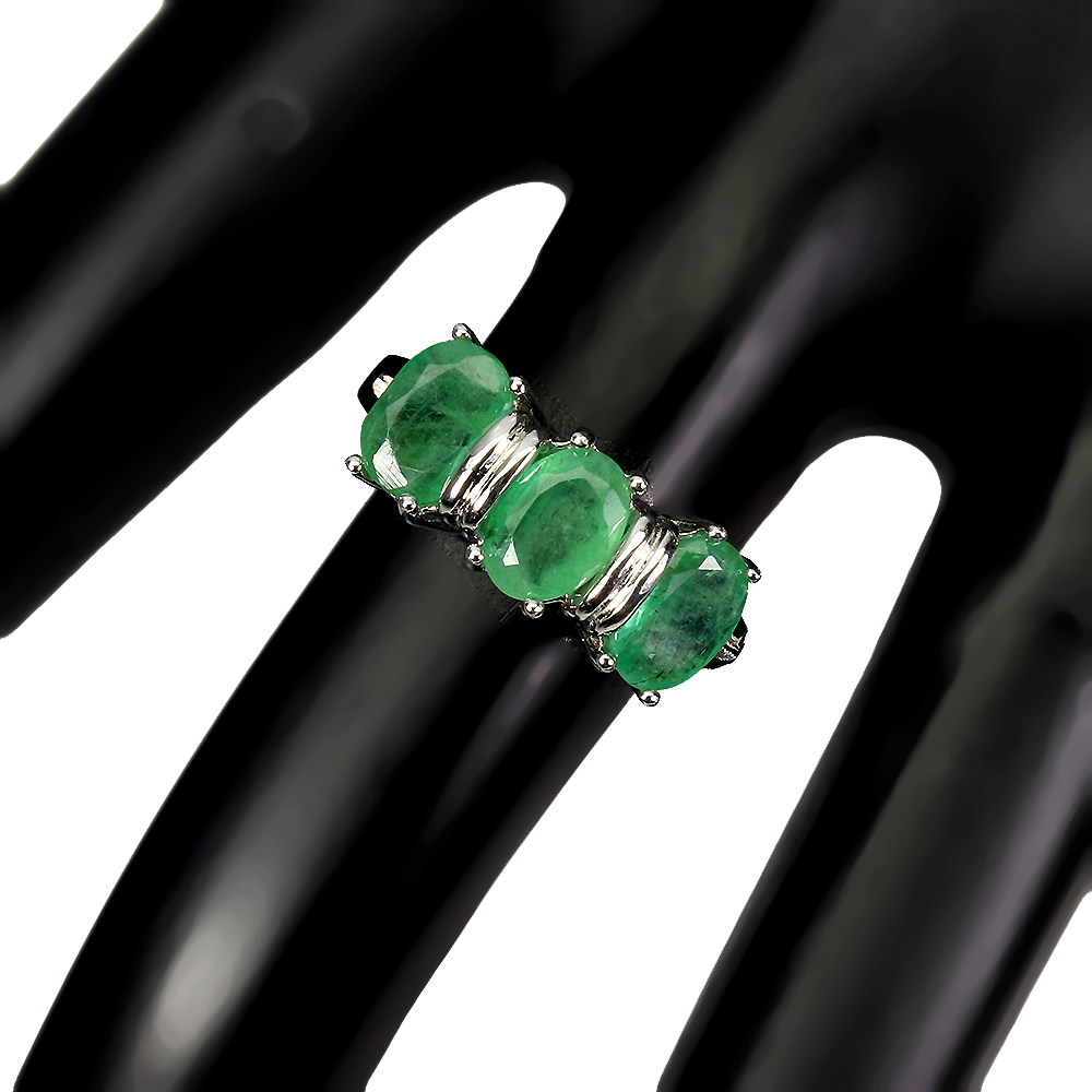 Unheated Oval Emerald 7x5mm 14K White Gold Plate 925 Sterling Silver Ring Size 8