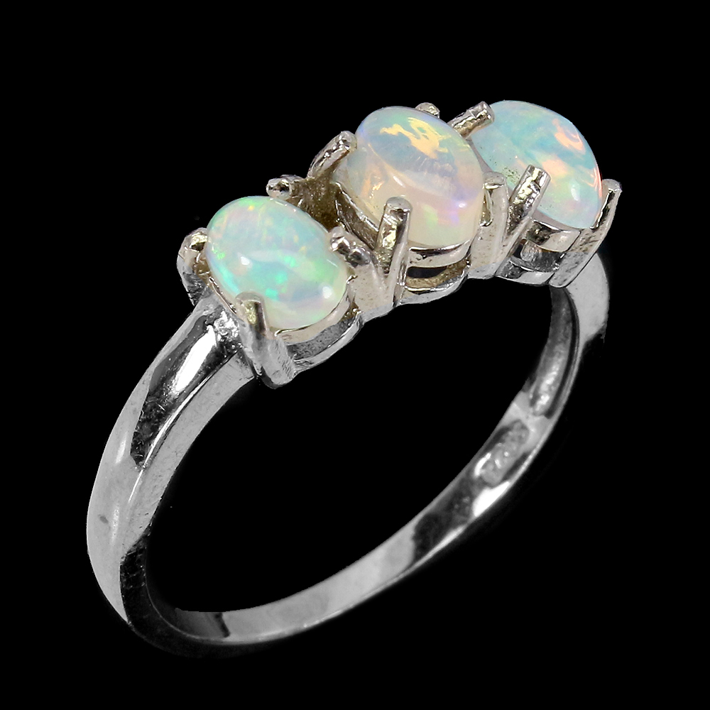 Unheated Oval Fire Opal Rainbow Full Flash 6x4mm 925 Sterling Silver Ring