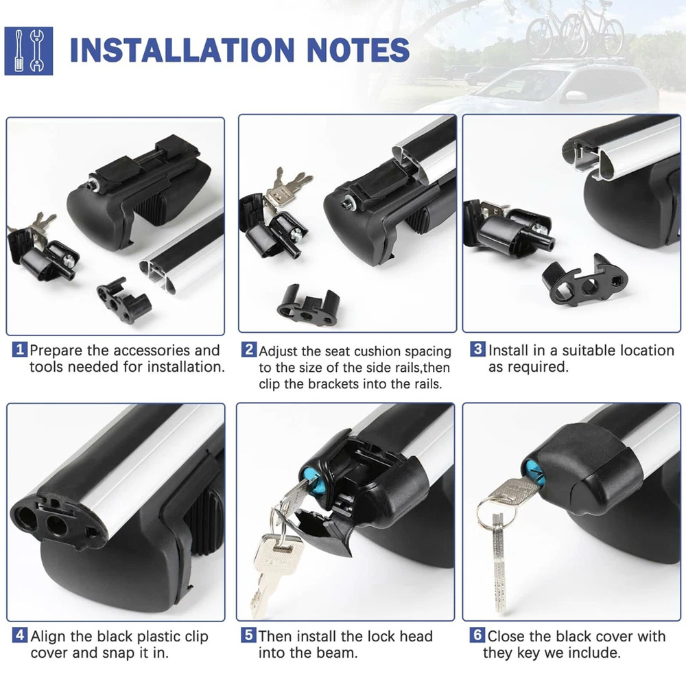 🚗Lockable anti-theft design: Both ends of the cross bar are equipped with lock design- 2 locks per bar(includes keys).