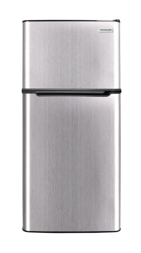 This Frigidaire 4.5 cu. ft. Compact Refrigerator with chrome trim has space for your groceries but small and compact to fit in small places. This model features a top-mount full size freezer and storage door. Slide-out shelves provides efficient storage options and adds to its unique style. Designed for energy efficiency, The flush-back design and door handle with retro appearance that looks great in your home, in a dorm or at the office.