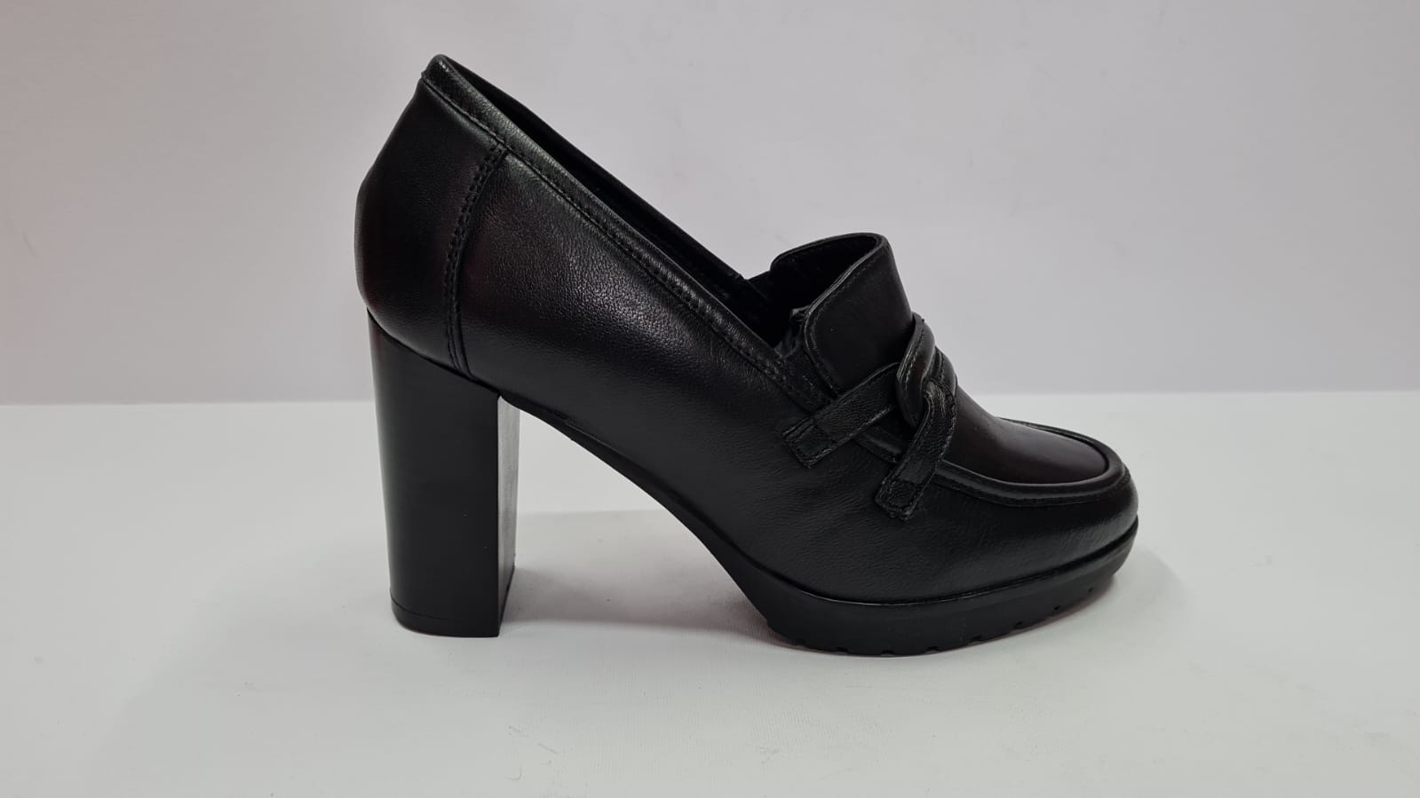 Zapatos de piel con elástico, con tacón bloque de 9 cm aproximadamente,