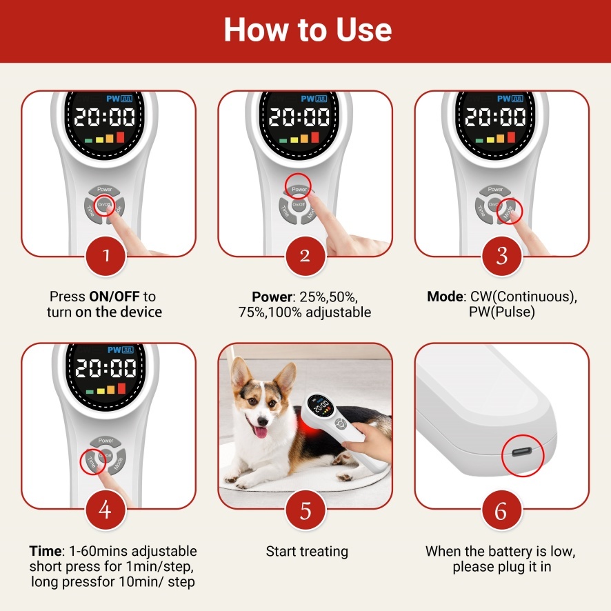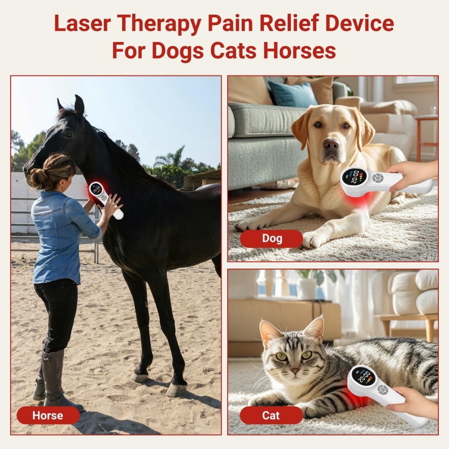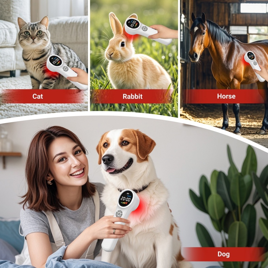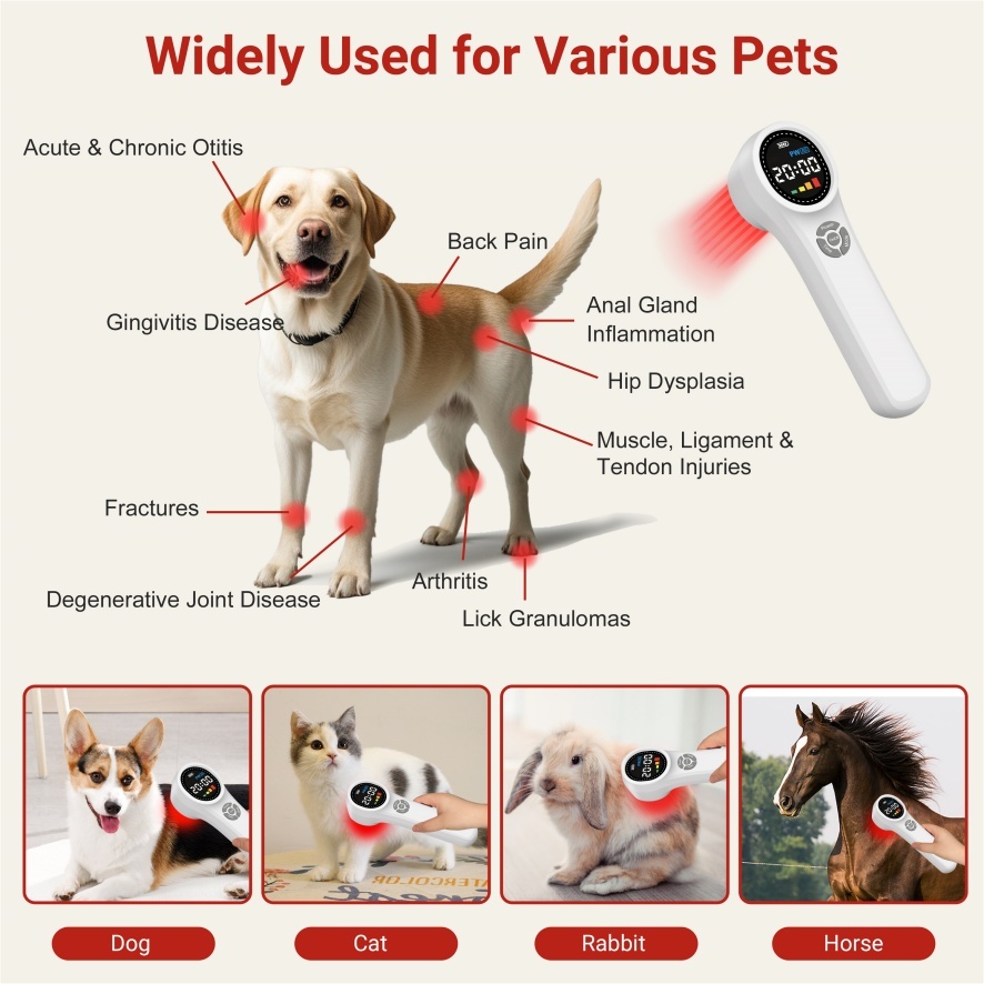 Our physical low level laser therapy equipment is suitable for body for joint pain in elbow, knee, ankle, shoulder, hand, feet, treat acute and chronic injuries, sprains and strains, tendinitis, arthritis, swelling due to disc problems in the back etc. It can be used for a wide range of pet conditions including gingivitis, intervertebral disc problems, musculoskeletal abnormalities, soft tissue trauma, open wounds. Pet laser light for dogs, horses, cats.
