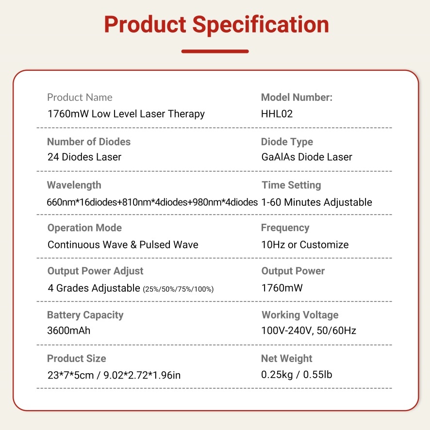 Near Infrared Light Wavelength: 810nm*4diodes*200mW+980nm*4diodes*200mW