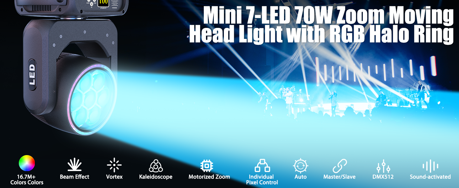16 Million+ Vibrant Colors & Dual Light Systems: Deliver stunning, pure-color illumination with 7 high-power 40W RGBW LEDs (16.7 million+ blendable hues) plus 42 auxiliary LEDs for rich, seamless effects and vibrant accent rings.