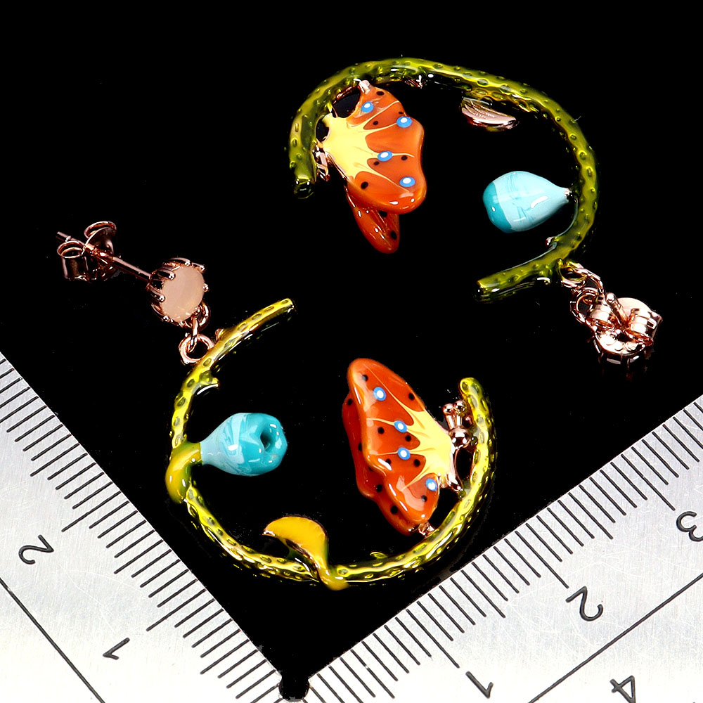925 Sterling Silver Earrings Round Simulated Cz 4mm Gemstone Enamel Butterfly