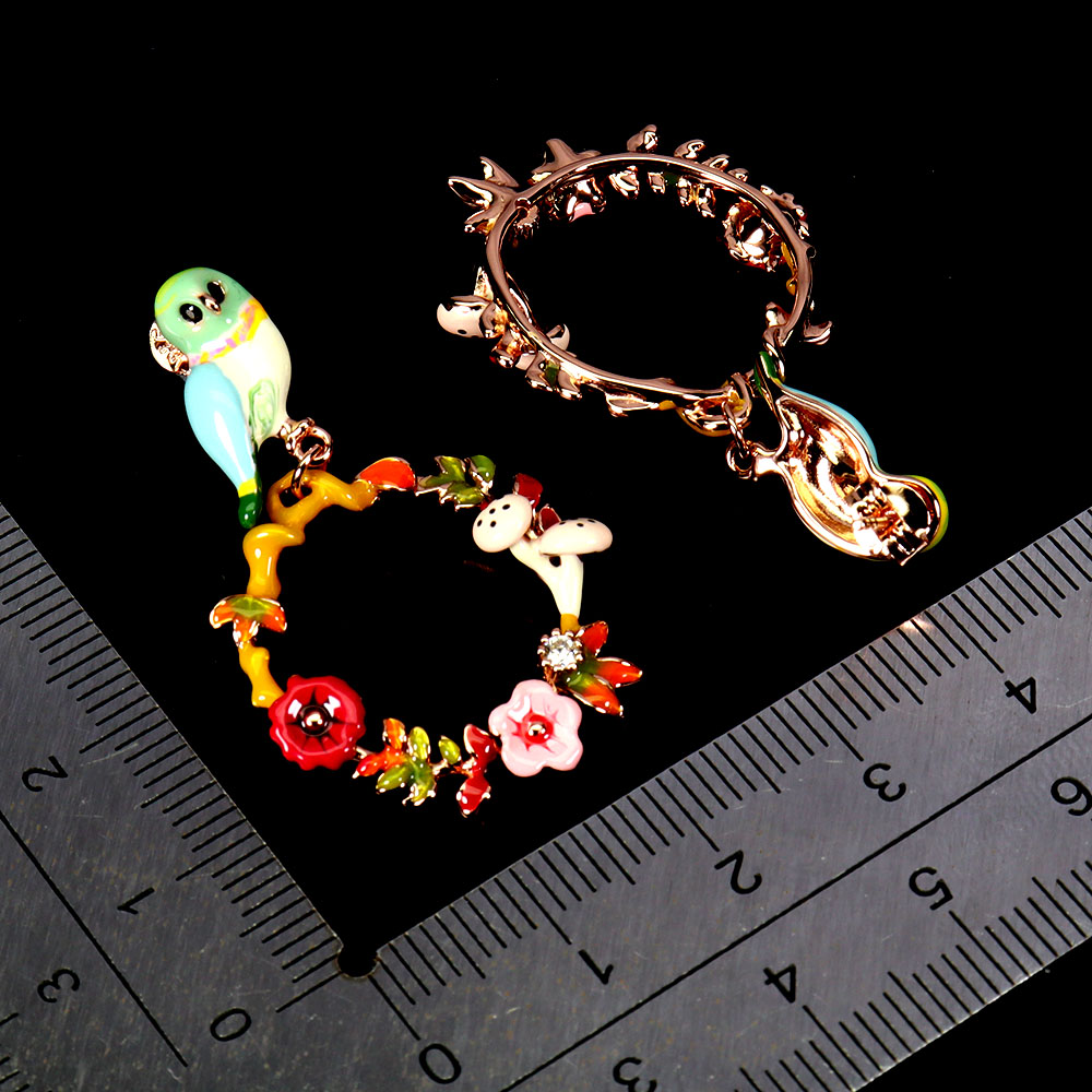 925 Sterling Silver Earrings Round Simulated Cz Gemstone Enamel Bird Jewelry