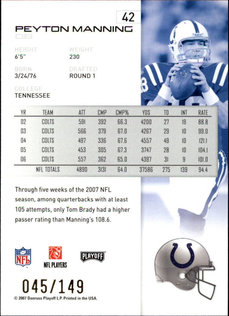 2007 Playoff NFL Playoffs Gold Metalized #42 Peyton Manning /149 - FB