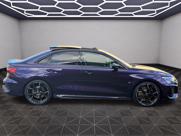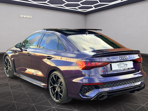At K Motor Sales, we are proud to present this exceptional Audi RS3 2.5 TFSI Vorsprung Saloon, a rare and highly sought-after example with just 4,500 miles. This vehicle comes with a full Audi service history and is backed by an Audi warranty valid until September 2026, ensuring complete peace of mind and confidence in its outstanding condition.Finished in the ultra-rare and incredibly striking Ultra Violet 1 OF 1 Special order paint with a 1 year waiting time, this RS3 Vorsprung stands out as one of the most distinctive examples on the market. As the top-of-the-range model, it offers an extensive specification that delivers both luxury and performance in equal measure. The car features a panoramic roof, full electric memory seats, heated front seats, and the premium Bang & Olufsen audio system, making every journey as comfortable as it is engaging. It also includes a rear-view camera for easy manoeuvring, the Black Styling Pack for an enhanced exterior presence, and seamless smartphone connectivity through Apple CarPlay.This RS3 has been meticulously cared for and remains in outstanding condition throughout. For added security, it is fitted with a Ghost immobiliser, offering discreet and robust protection.This Audi RS3 Vorsprung Saloon represents an extremely rare opportunity to acquire a low-mileage, high-specification performance saloon in a truly unique colour, supported by impeccable history and manufacturer warranty.Viewings are strictly by appointment only.Part exchange is welcome.If you prefer to message our sales team, you can do so on .