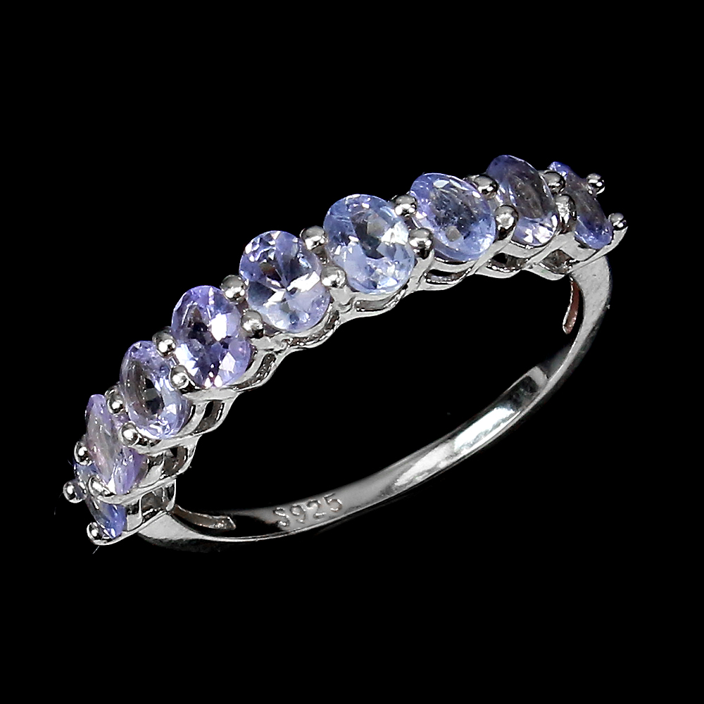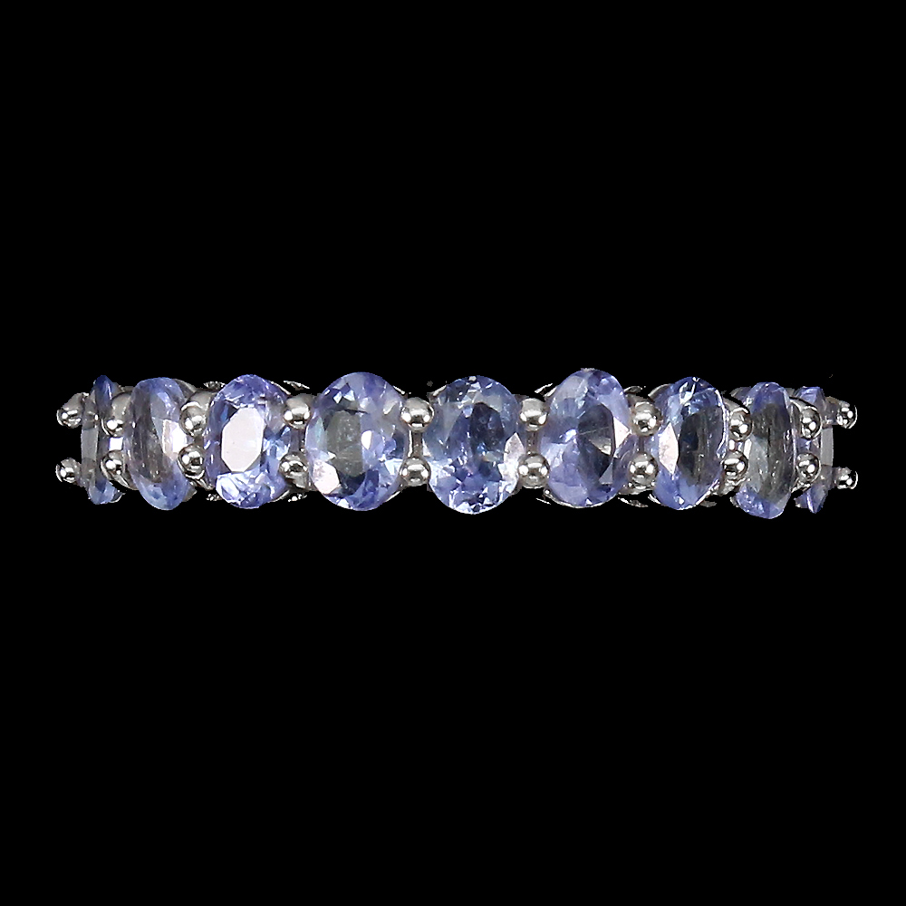 Unheated Oval Tanzanite 4x3mm 14K White Gold Plate 925 Sterling Silver Ring 8