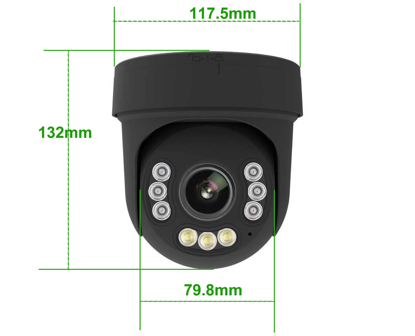 This is a high-quality, fully functional semi metal SPEED DOME professional camera. Equipped with a high-performance 4K 30 frame processor and paired with SONY IMX415 low light high-quality SENSOR. Use a 5x high-precision optical zoom lens and support 6x digital zoom. It can support a total of 30X ZOOM, meeting most user scenarios. The camera adopts 42U LED lights, which can provide sufficient night vision light source for nighttime. The LED grouping control mechanism using professional cameras eliminates the problem of poor night vision caused by uneven light distribution at night. By using precise tracking algorithms for human and vehicle shapes, it is possible to achieve perfect automatic control of Pan, Tilt, ZOOM during tracking. The camera supports multiple intelligent functions and a user-friendly interface. Please consult and read these functions. We believe it can perfectly solve the monitoring pain points encountered by users.