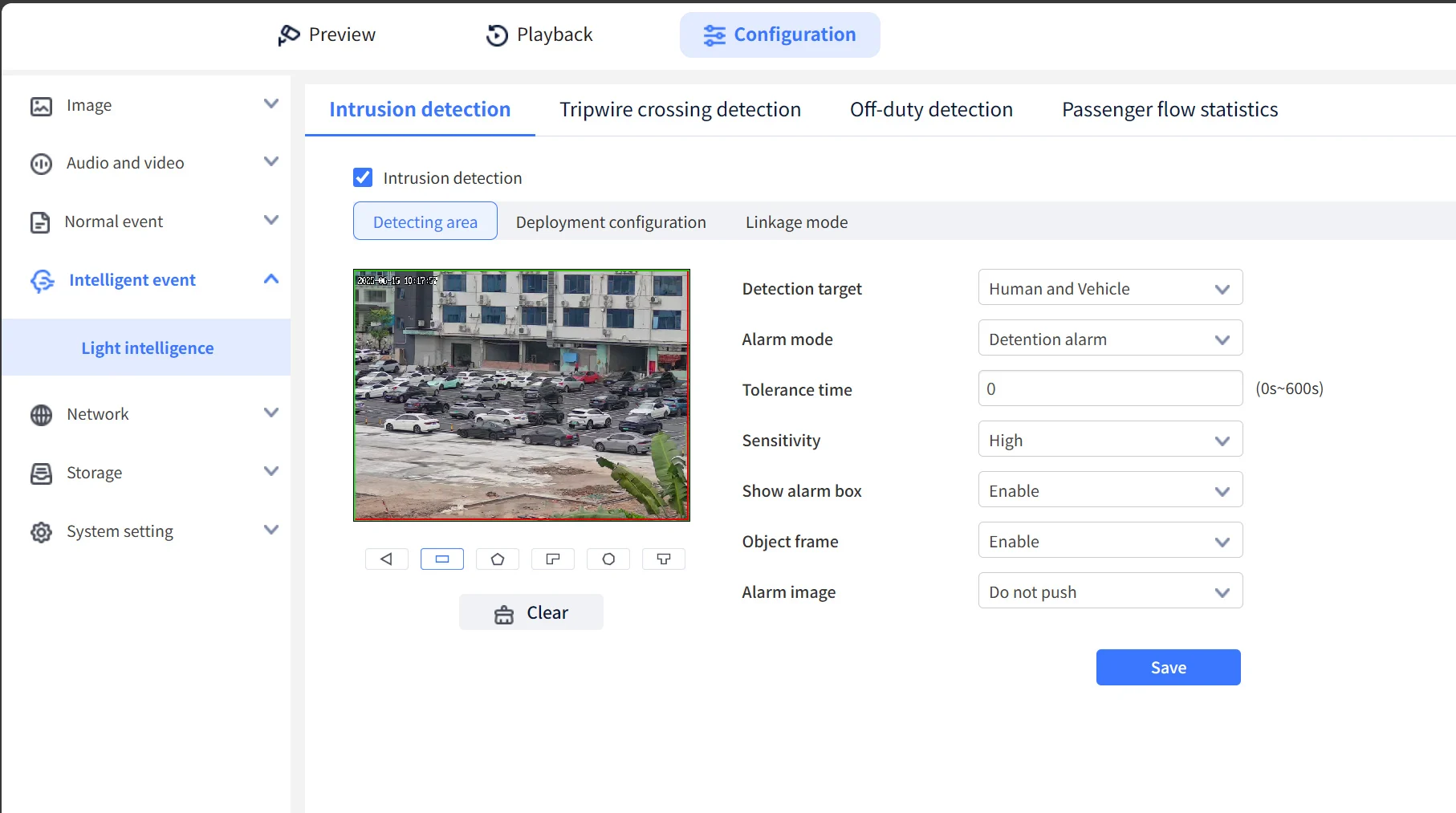 Smart Detect | Human and vehicle shape detection function; Expand the application scenarios of electronic fences, cross-border detection, departure detection, and passenger flow statistics |