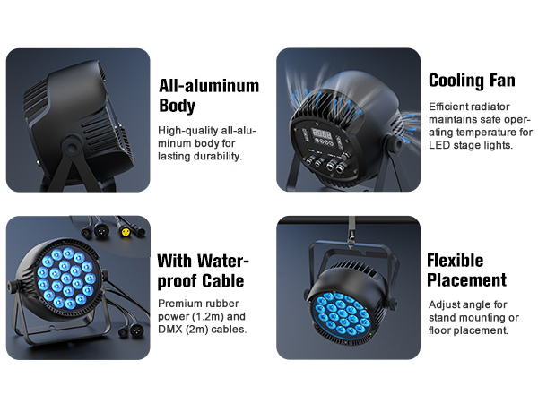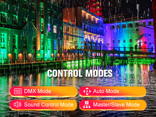 Multi-Control Modes – DMX512, auto-run, sound-active, and master/slave modes for versatile lighting control.
