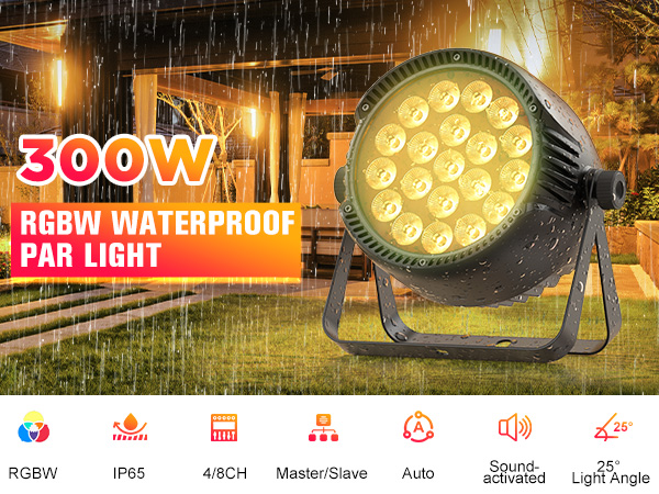 IP65 Waterproof 20PCS RGBW 4-IN-1 LED Lighting Outdoor Stage Par Light DMX Control Muted Up lighting Party Wash Light Strobe Effect DJ Light for Christmas Church Night Club Disco Club Wedding Bar