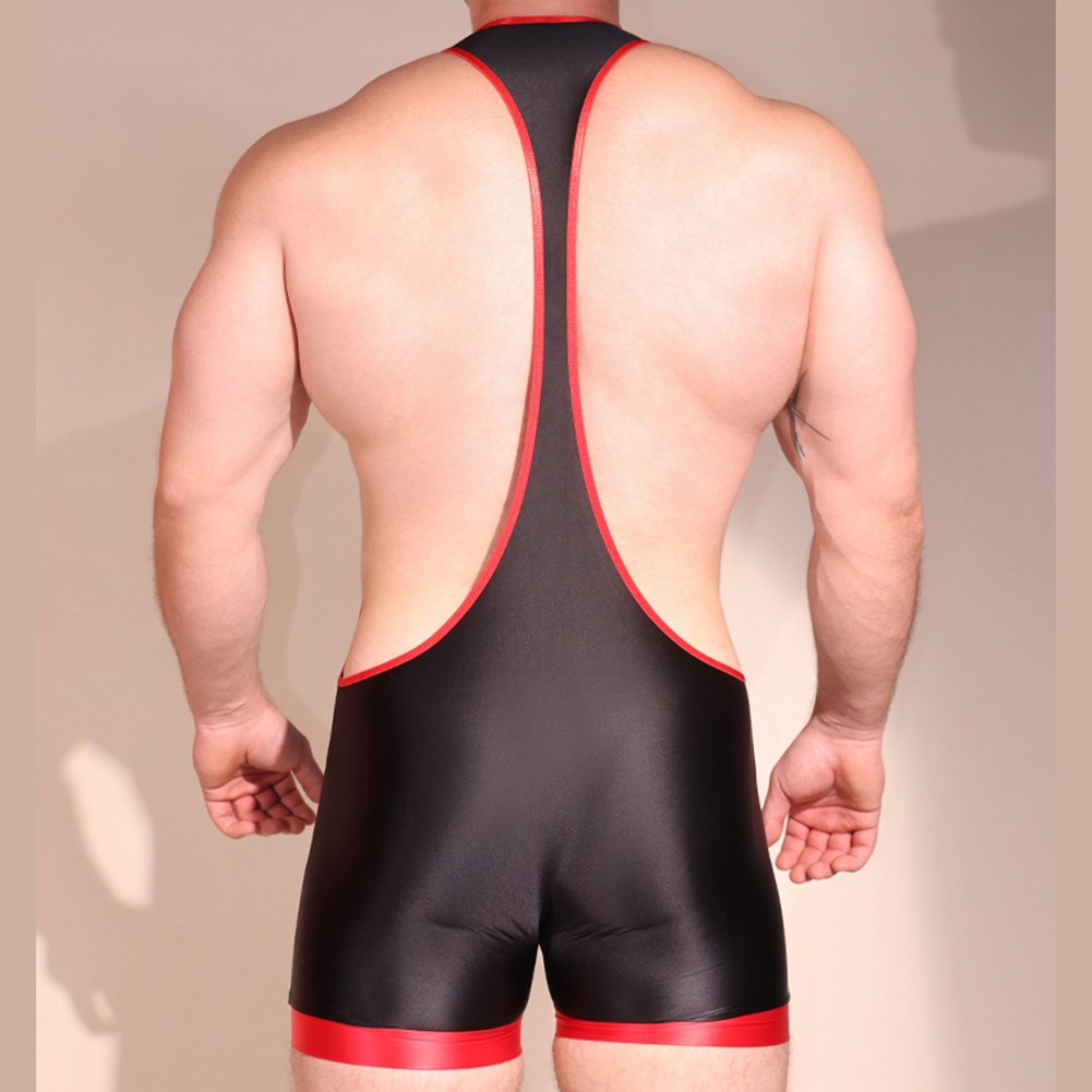 Mens Body Fit Oil Shiny Glossy Bodysuit Leotard Jumpsuit Underwear Boxer Shorts