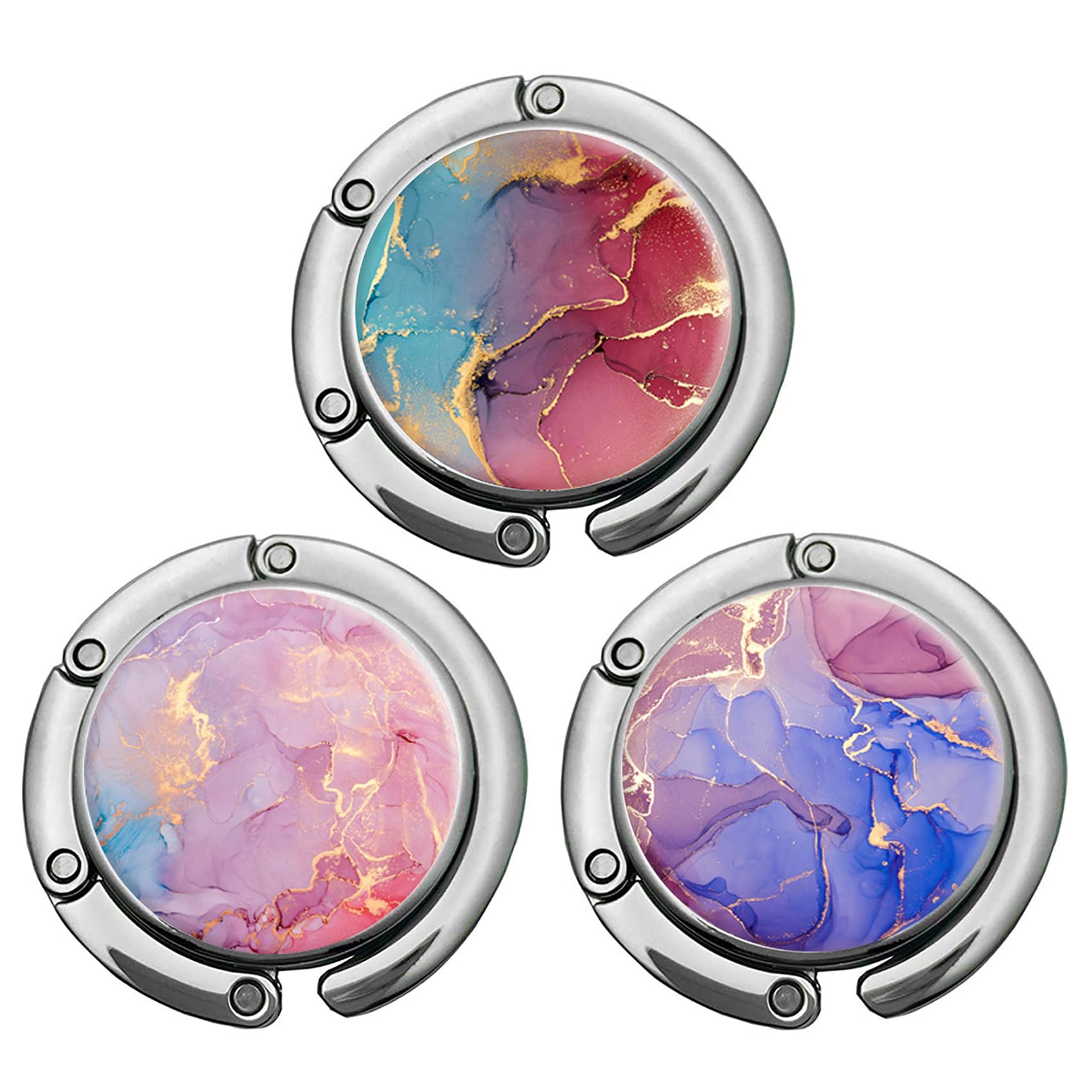 ZHENBAOLAI Foldable Purse Hook, Folding Handbag Hanger Bag B-3P Modern Marble