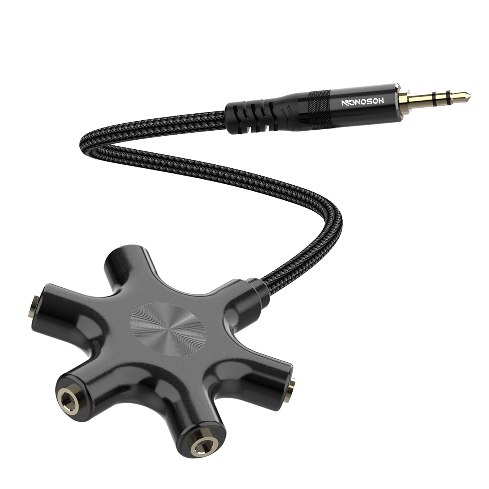 HOSONGIN 5-Way Headphone Splitter - 3.5mm Audio Sharing Hub with Black