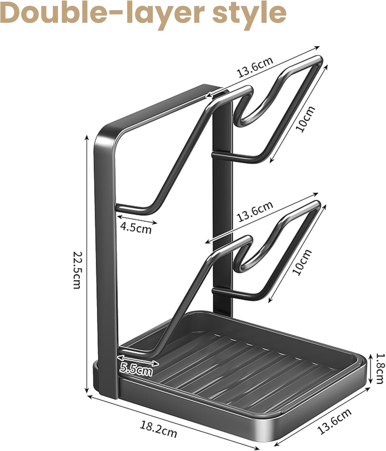 Store lids, cutting boards, baking sheets, or small kitchen tools. Available in single‑tier and double‑tier styles to fit different kitchen layouts and storage needs.