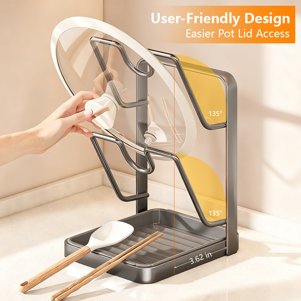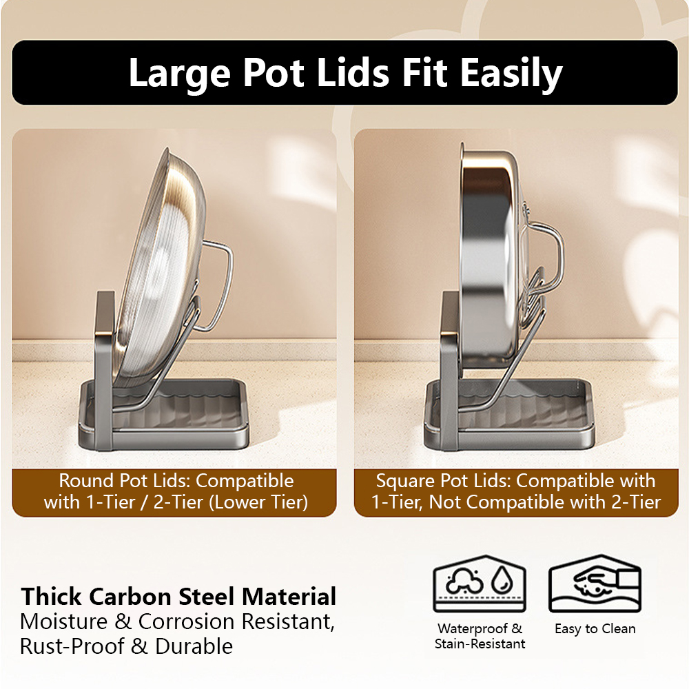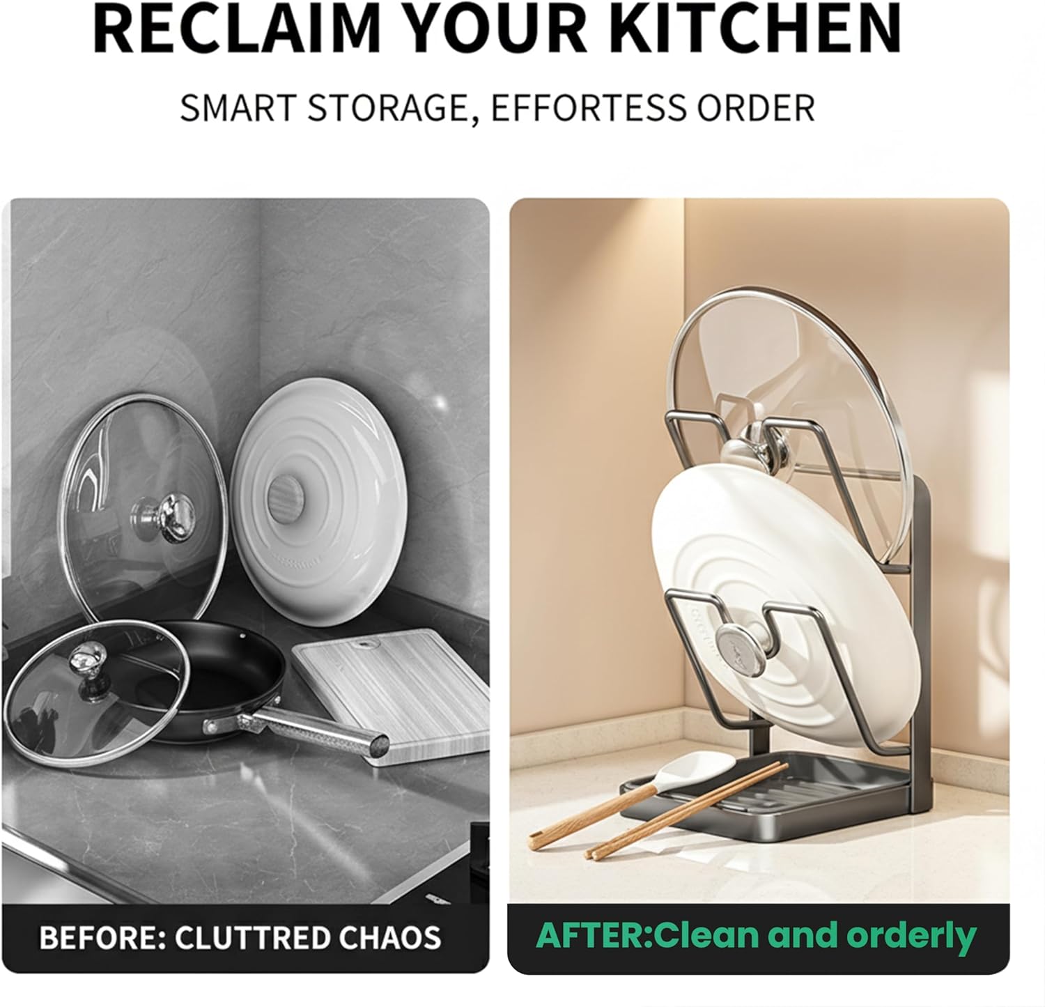 Kitchen Pot Lid Storage Rack Organizer for Countertop, Easy Tool