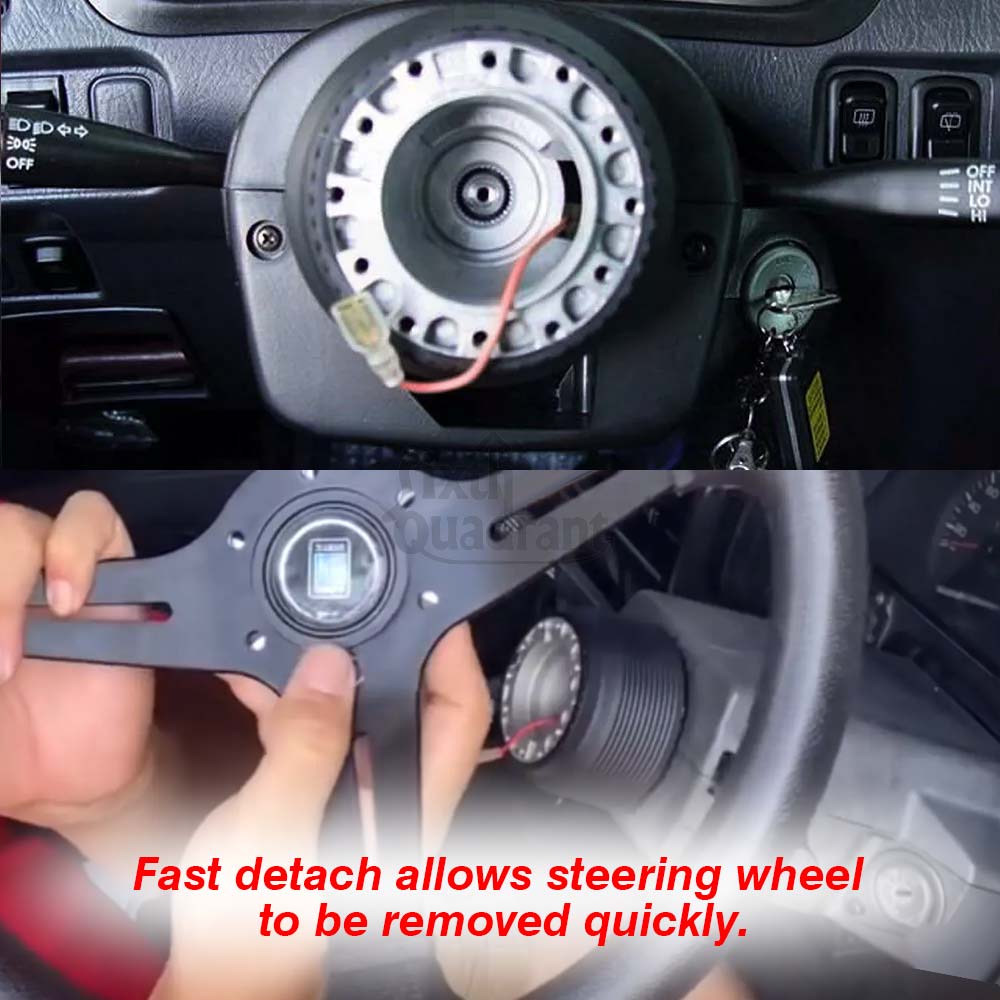 Fast detach allows steering wheel to be removed quickly.