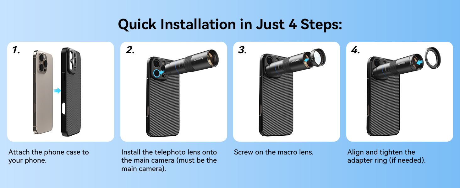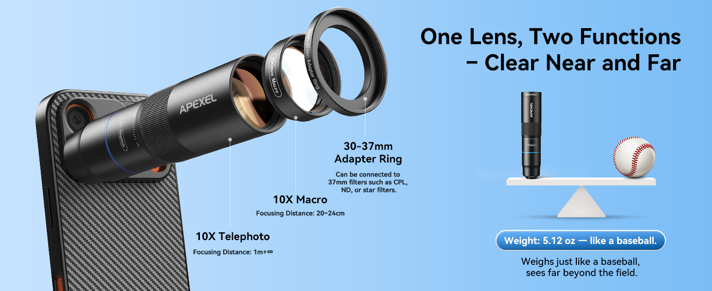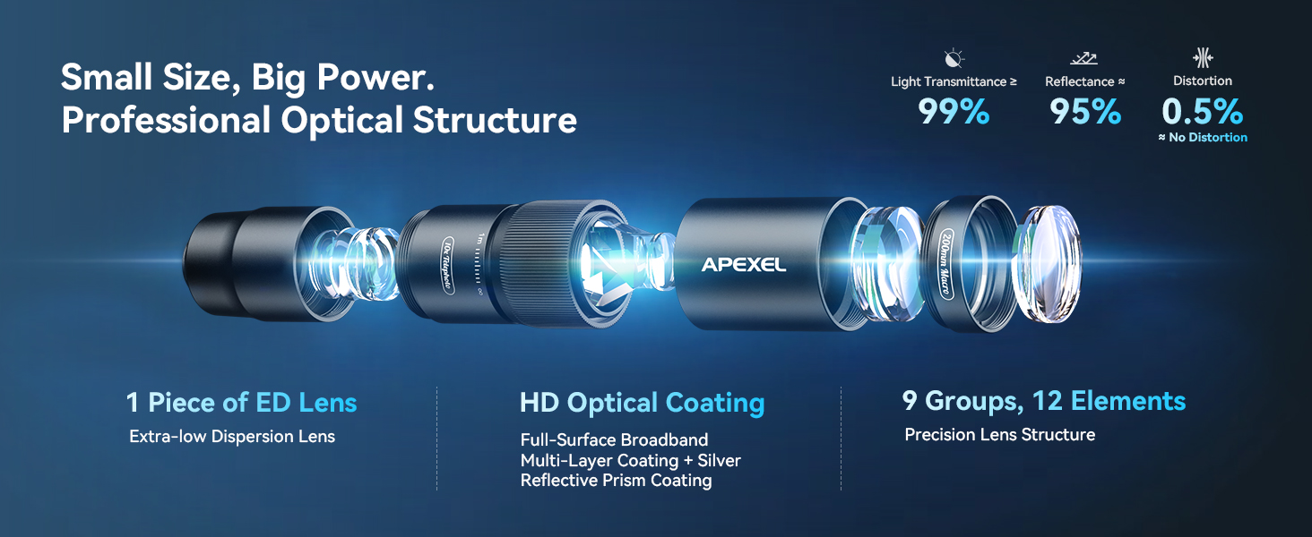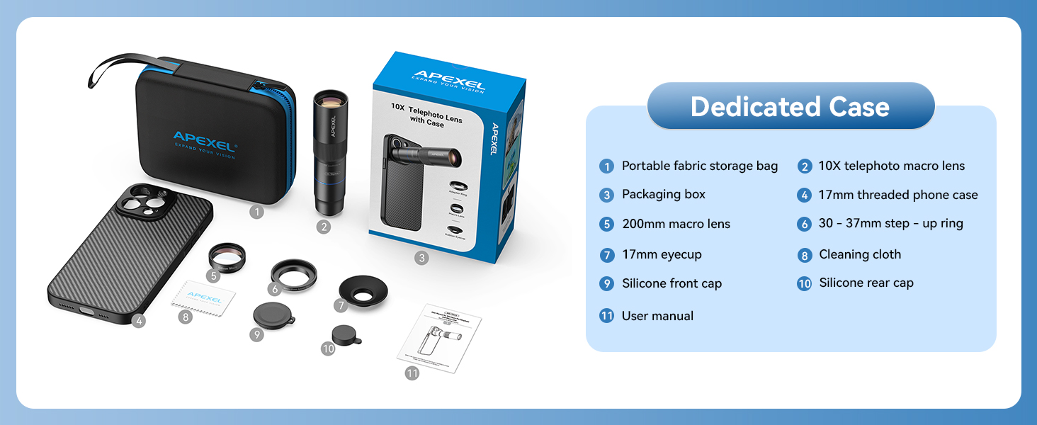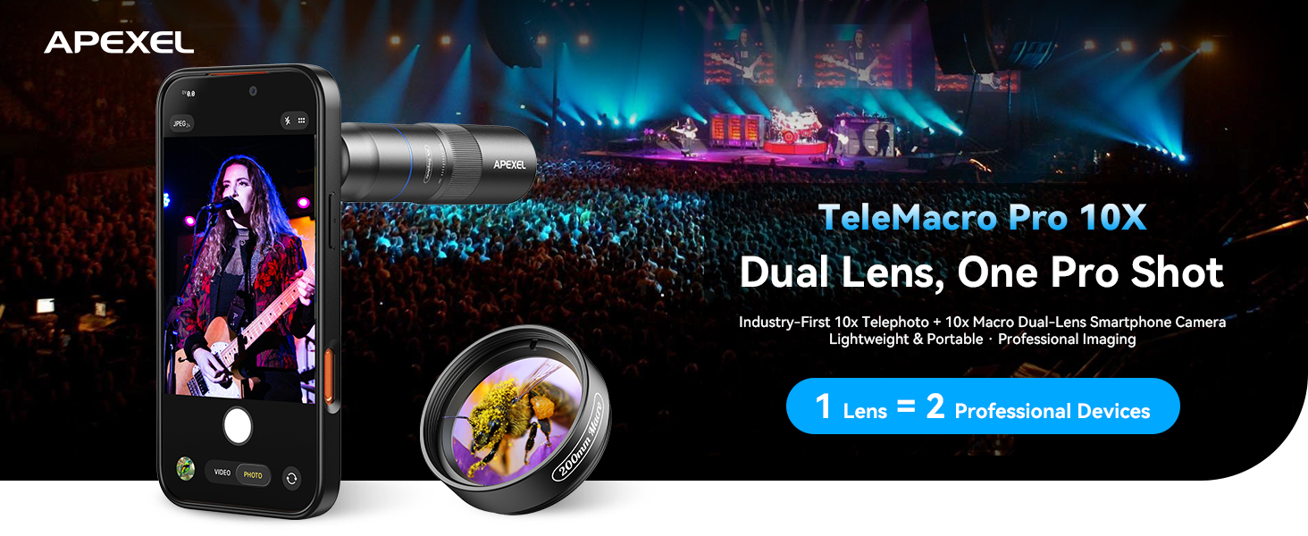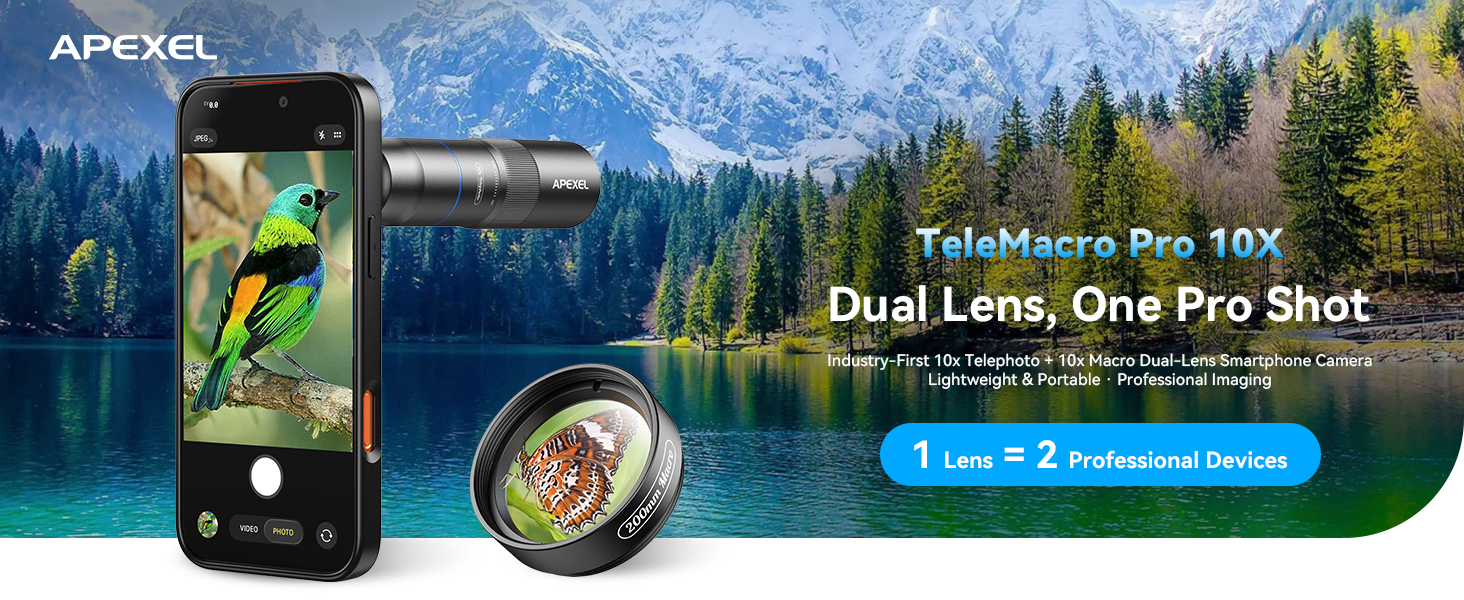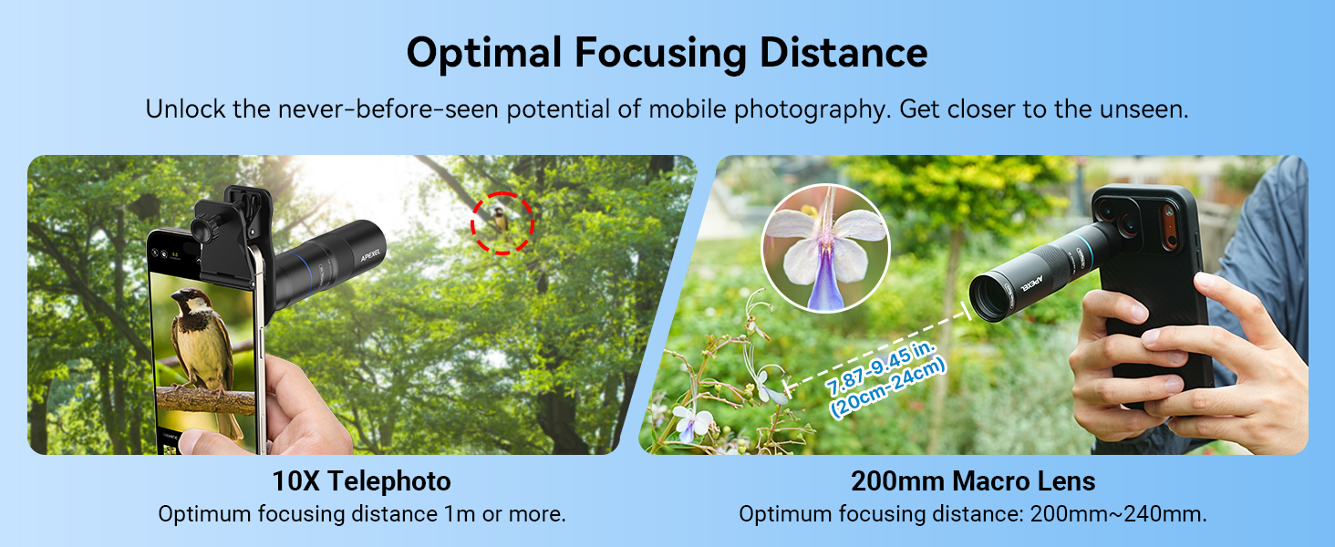 Ultra-HD optical technology: APEXEL 10X telephoto lens and 200mm macro lens with 17 Pro phone case