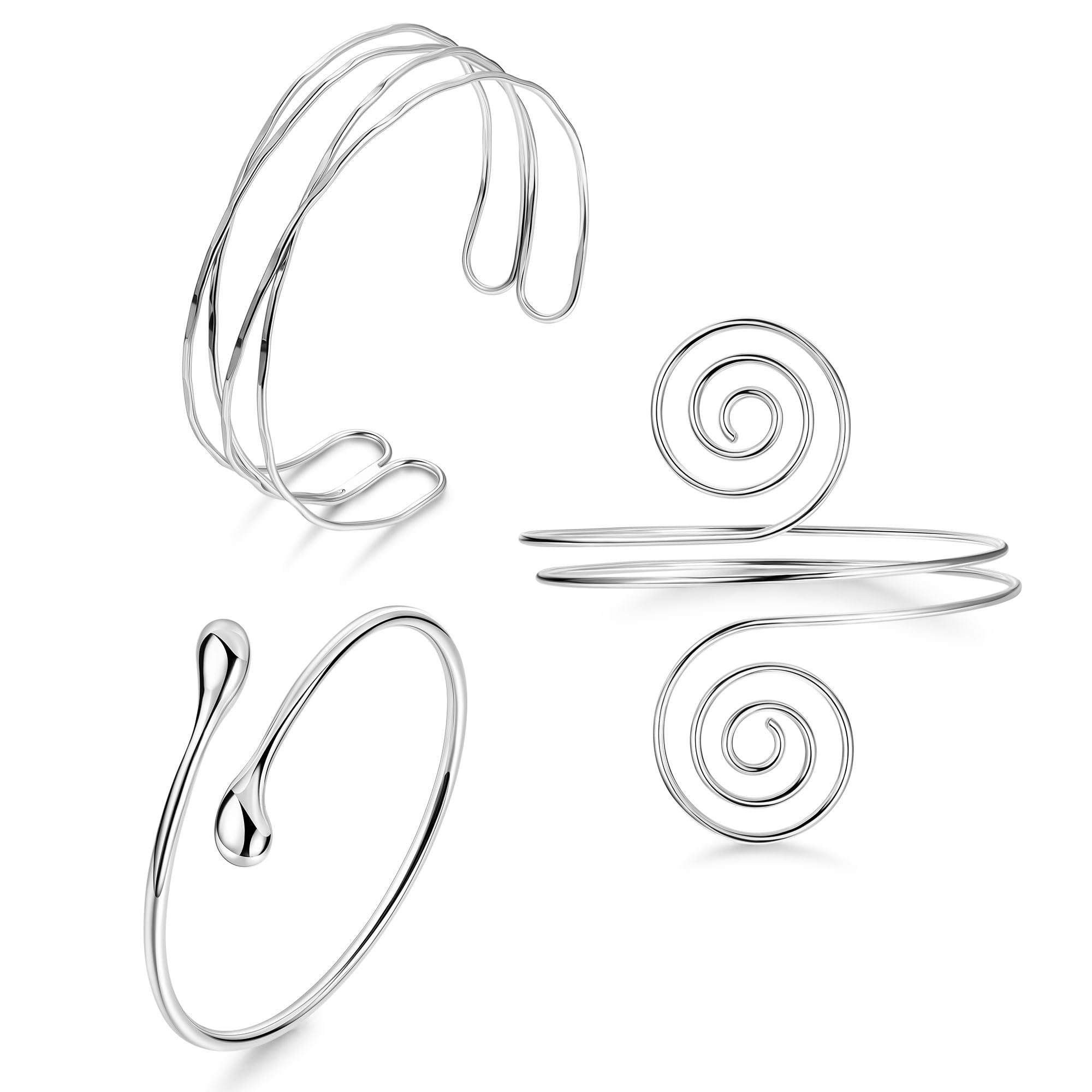 NICEIGHT 3Pcs Arm Cuff for Women Open Upper Bangle Silver-Style1