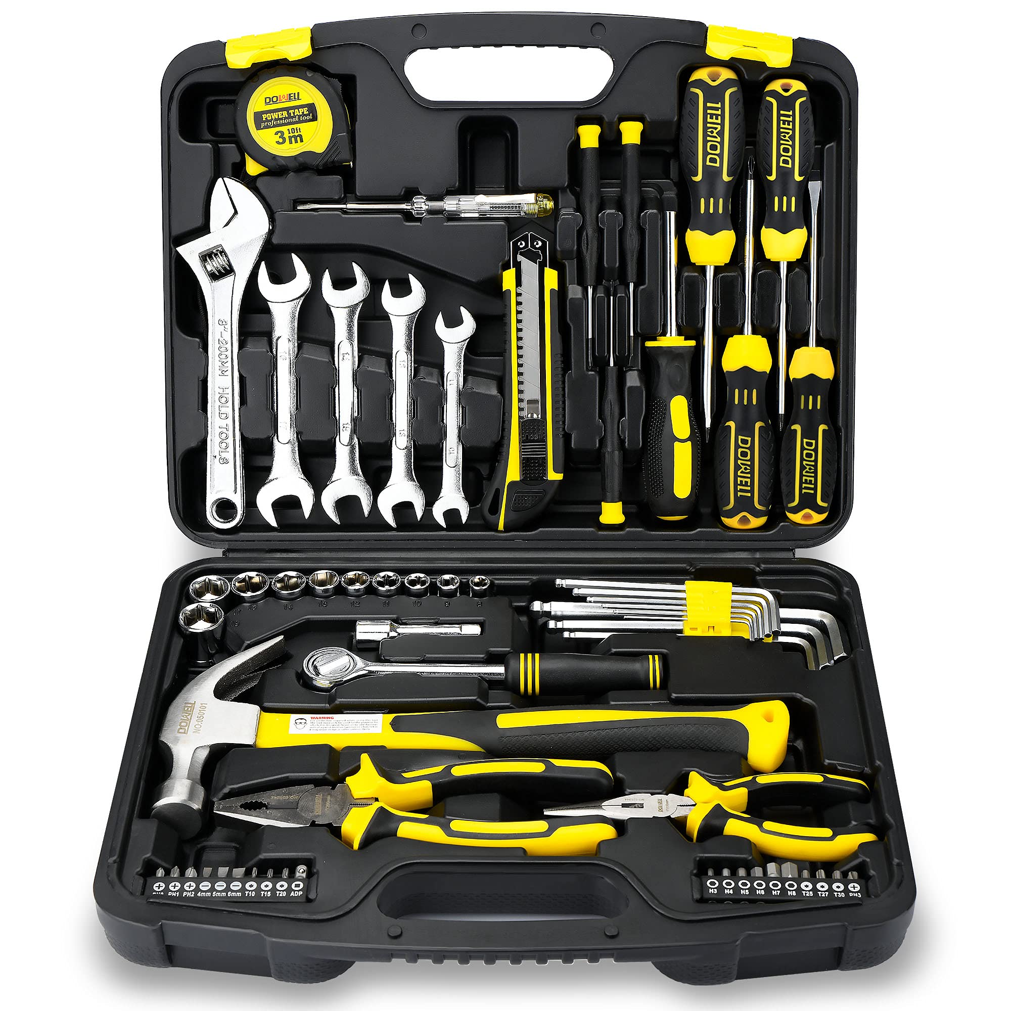DOWELL 61-Piece Tool Set Kit Mechanic 61 pcs, Yellow and Black